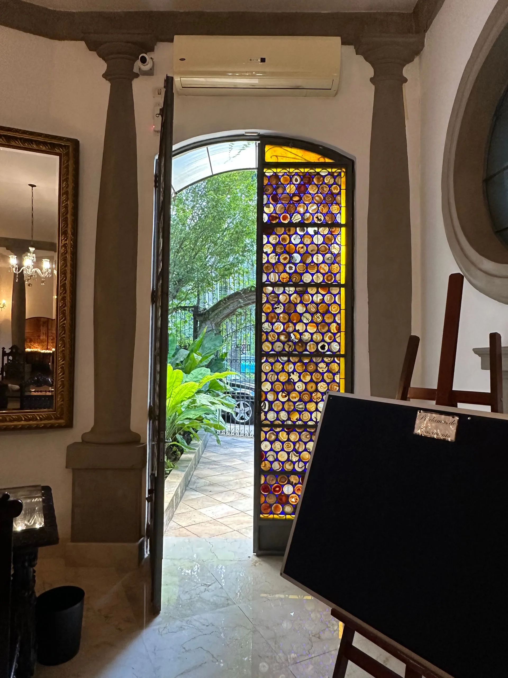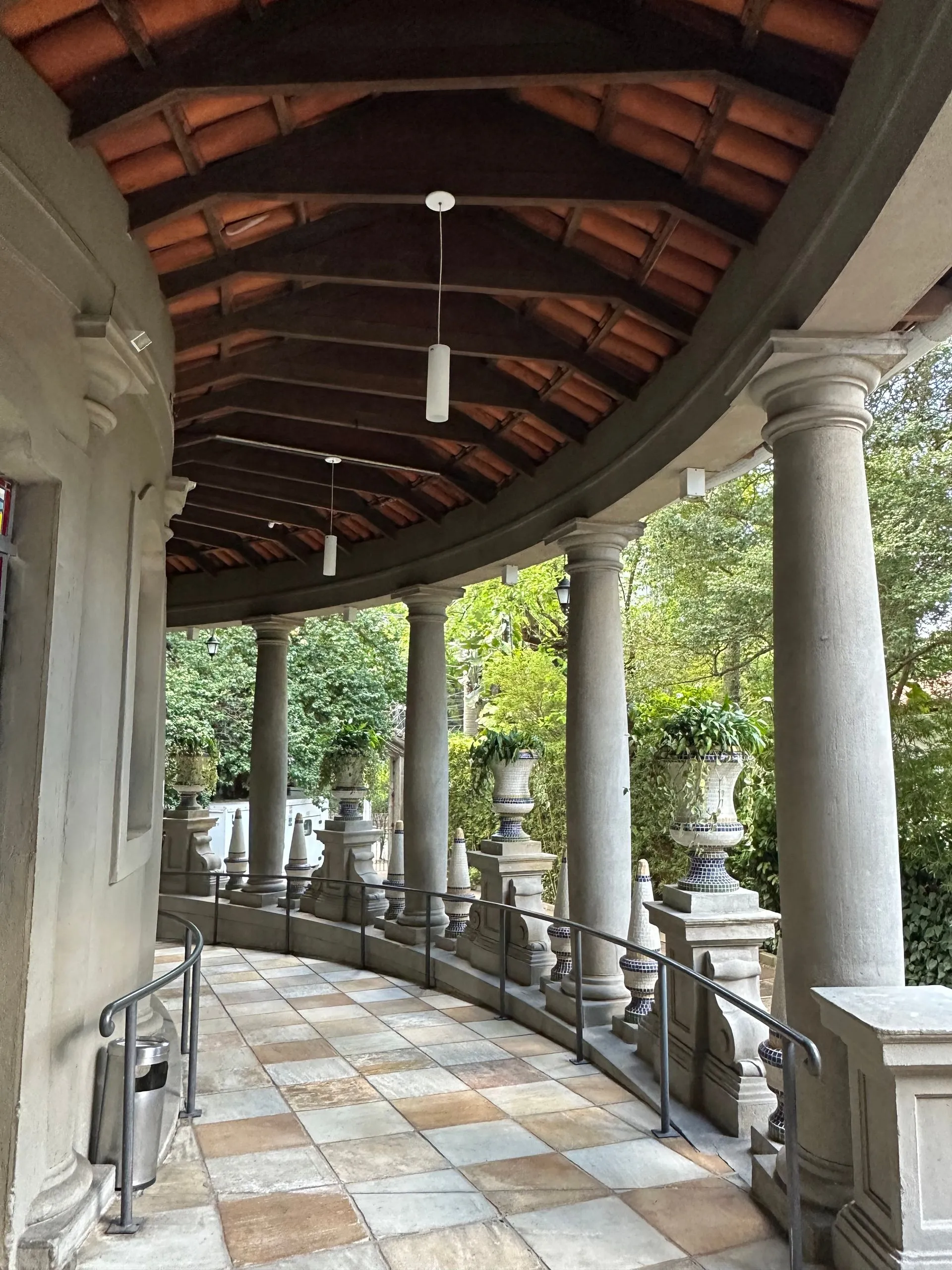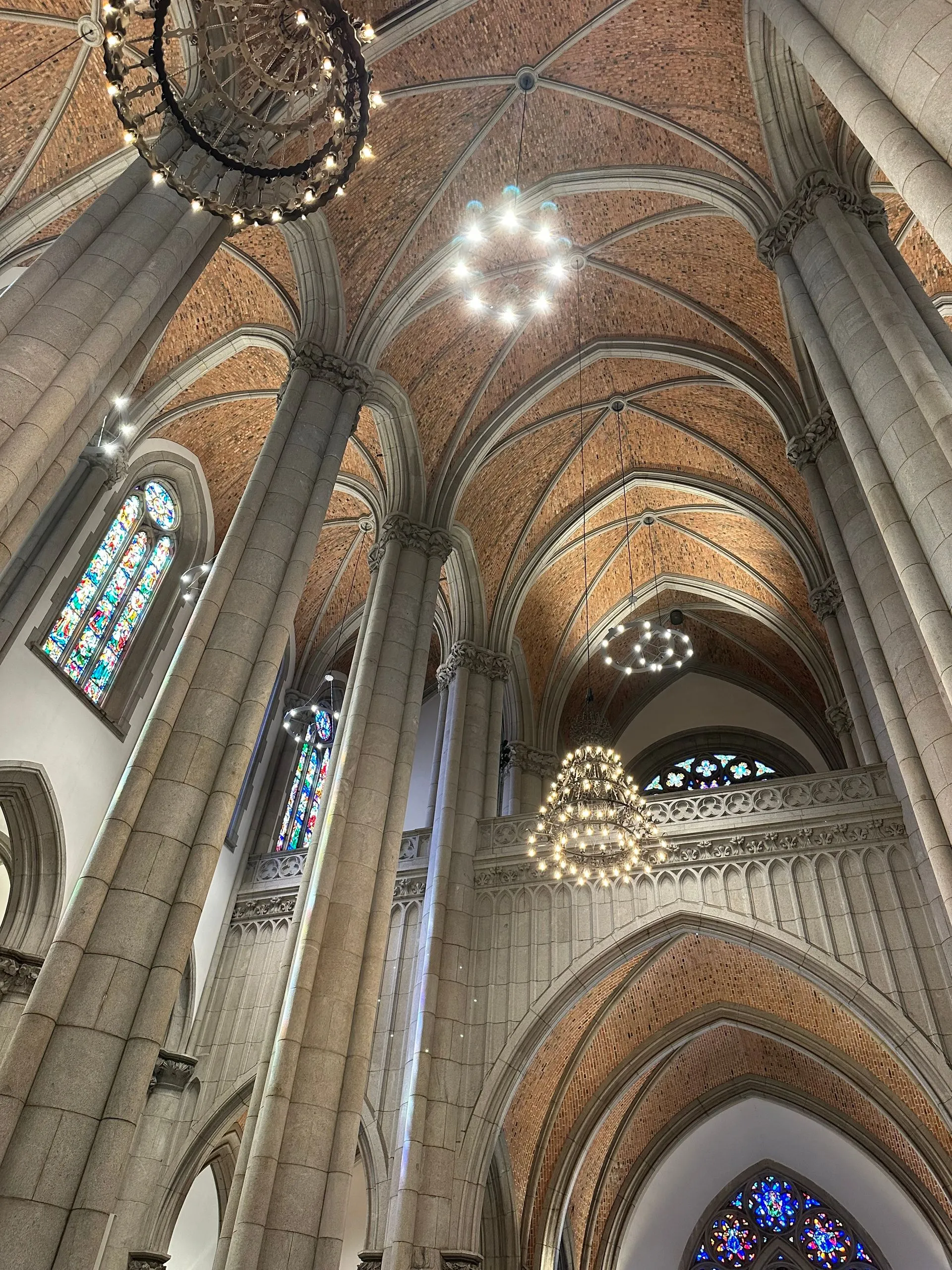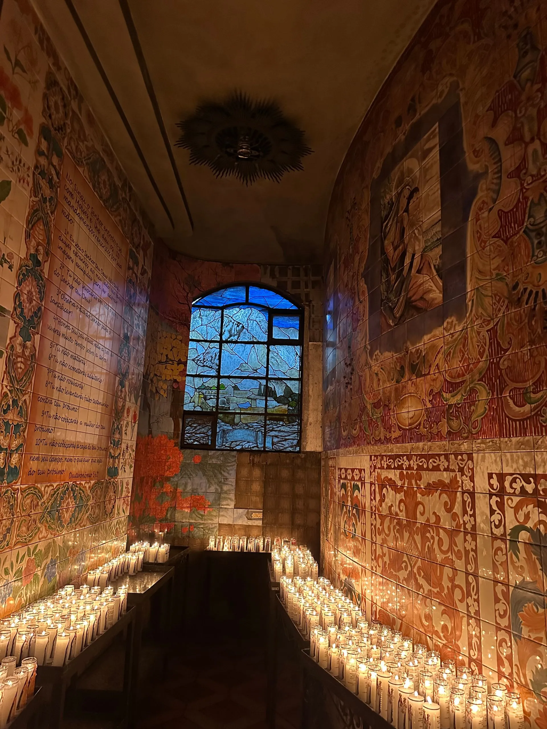 We grabbed a quick bite in this neighborhood and then went to find the most beautiful church I think I have ever seen Parroquia de Nuestra Señora de Brasil. It looks like a fancy hotel at the entry and the ceiling and mosaic tile work are stunning. An evening Mass was just getting ready to start - so we were limited in where we could stroll but the grounds and auxiliary spaces were equally charming. Was such a gorgeous little find.