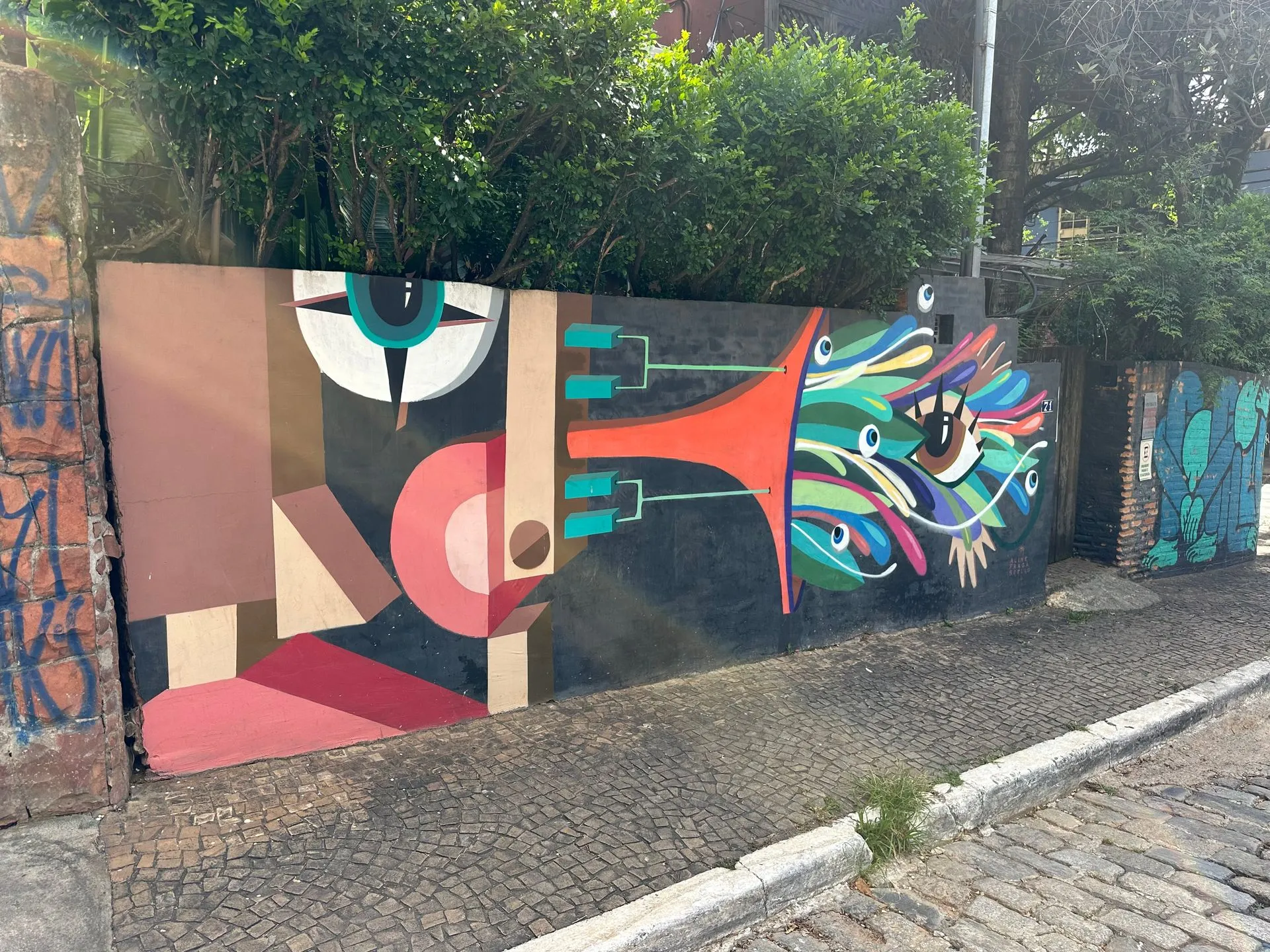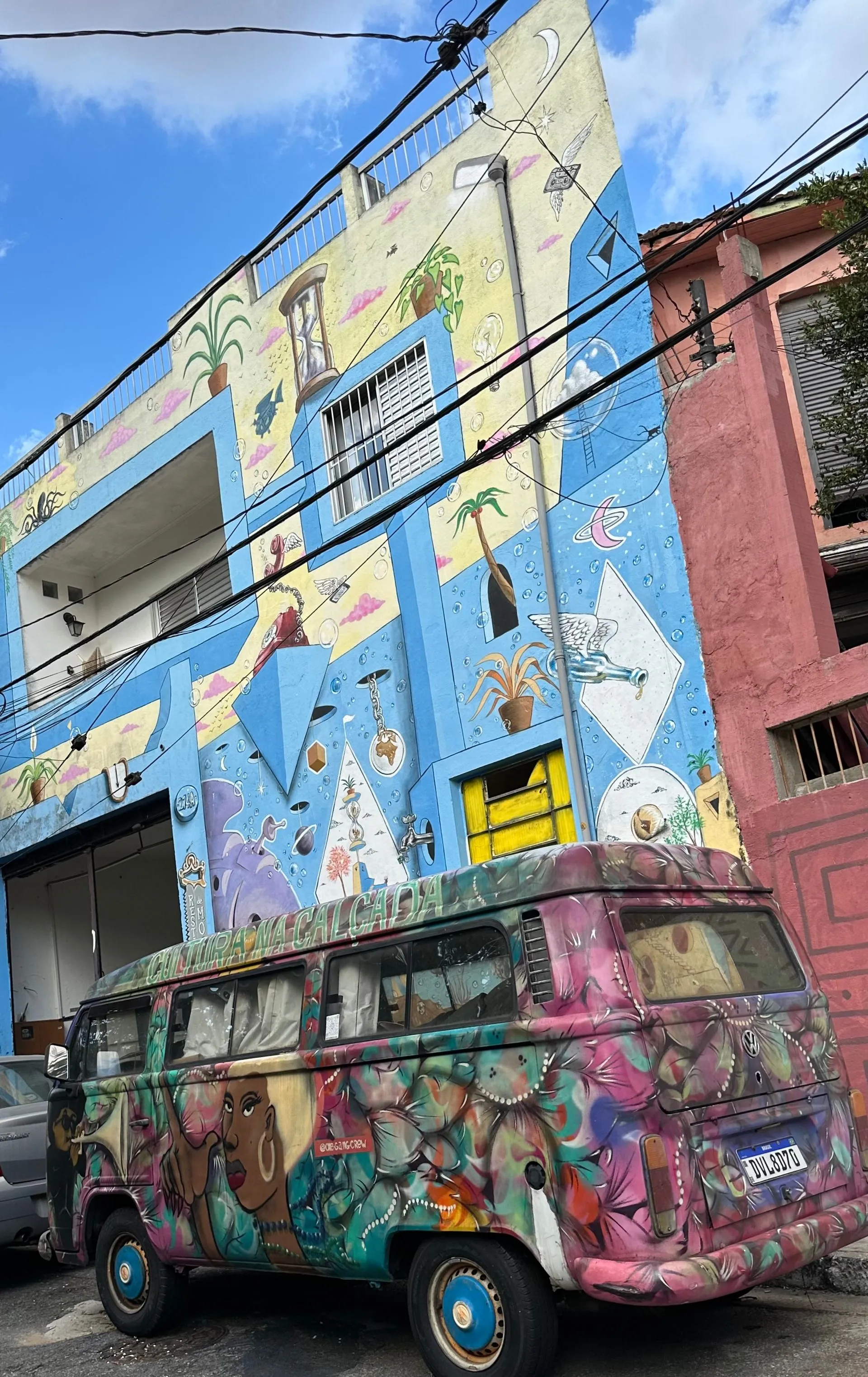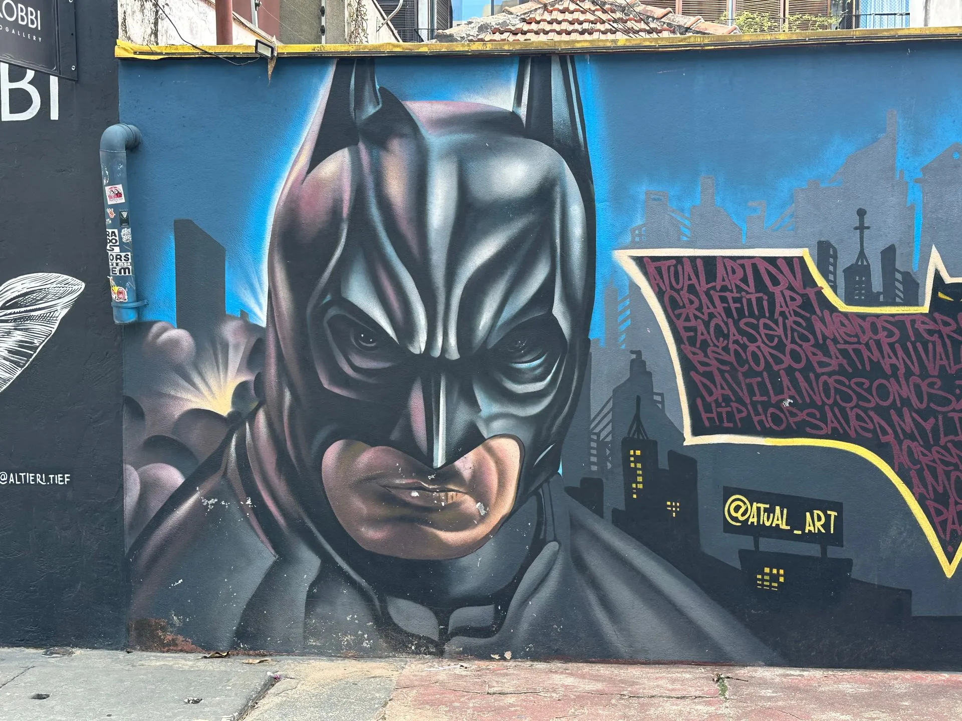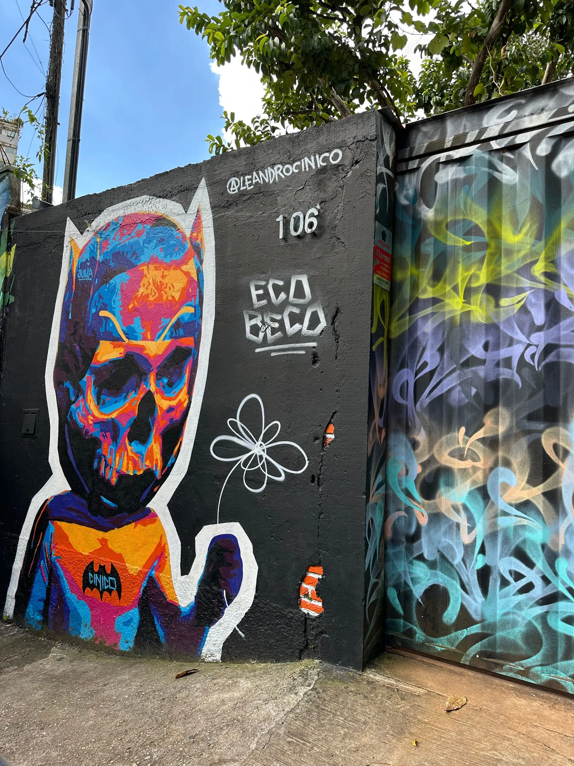 We then drove by Central Square & Performing Arts center ( which was covered by a lot of renovation scaffolding) on our way to the Beco do Batman neighborhood. Back in 1980 one artist did a mural of Batman and then more mural started to sprout here, now several blocks are dedicated to street art and their are lots of artisans and cool cafes mixed throughout.