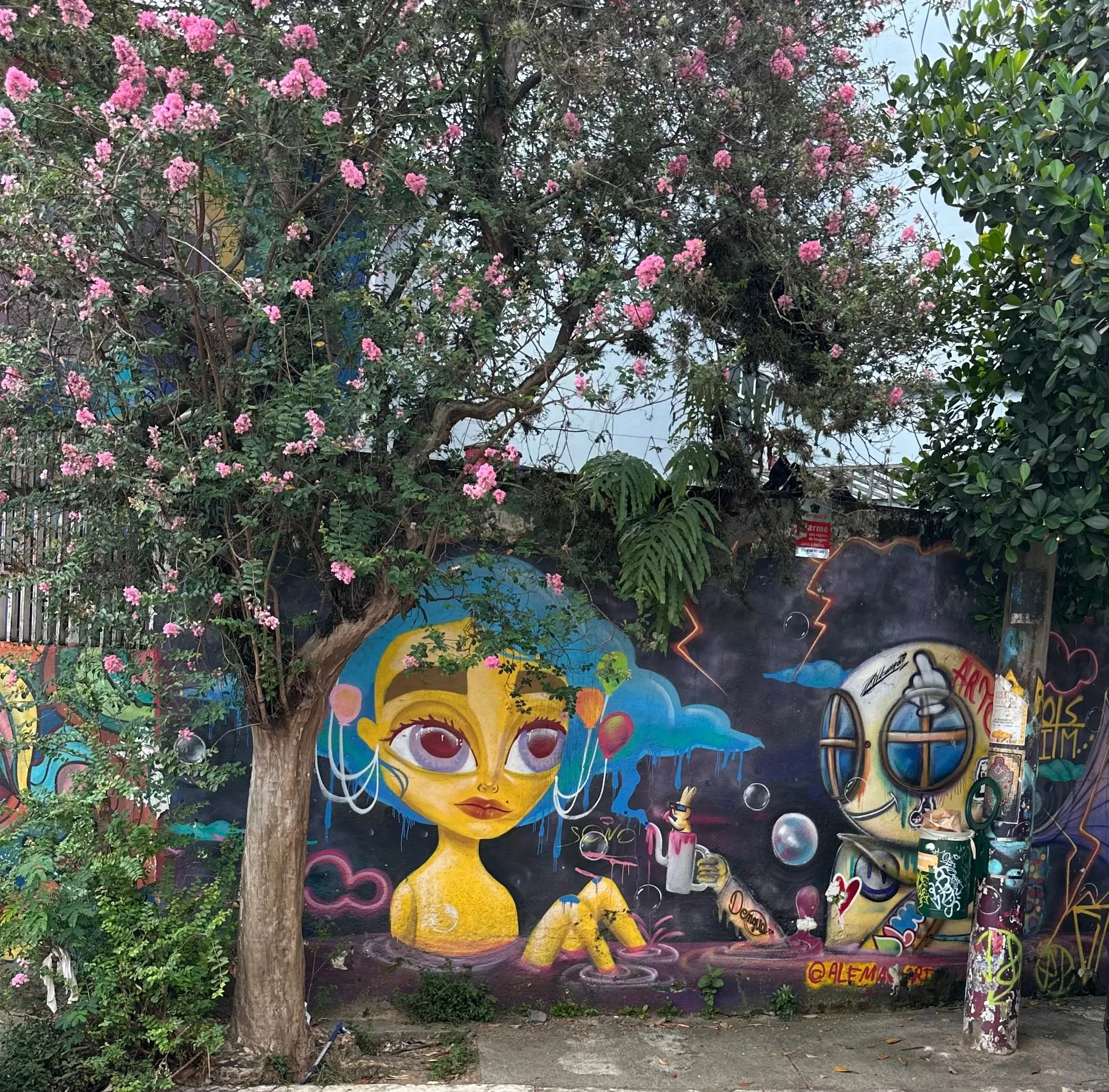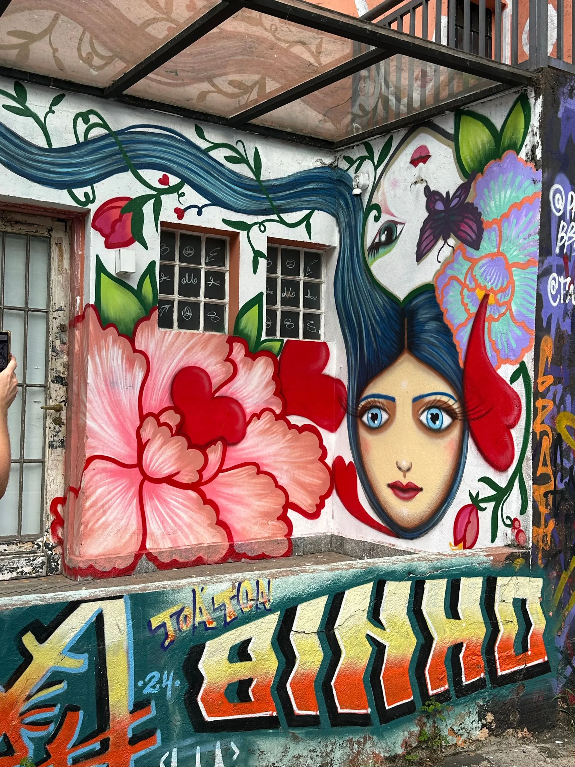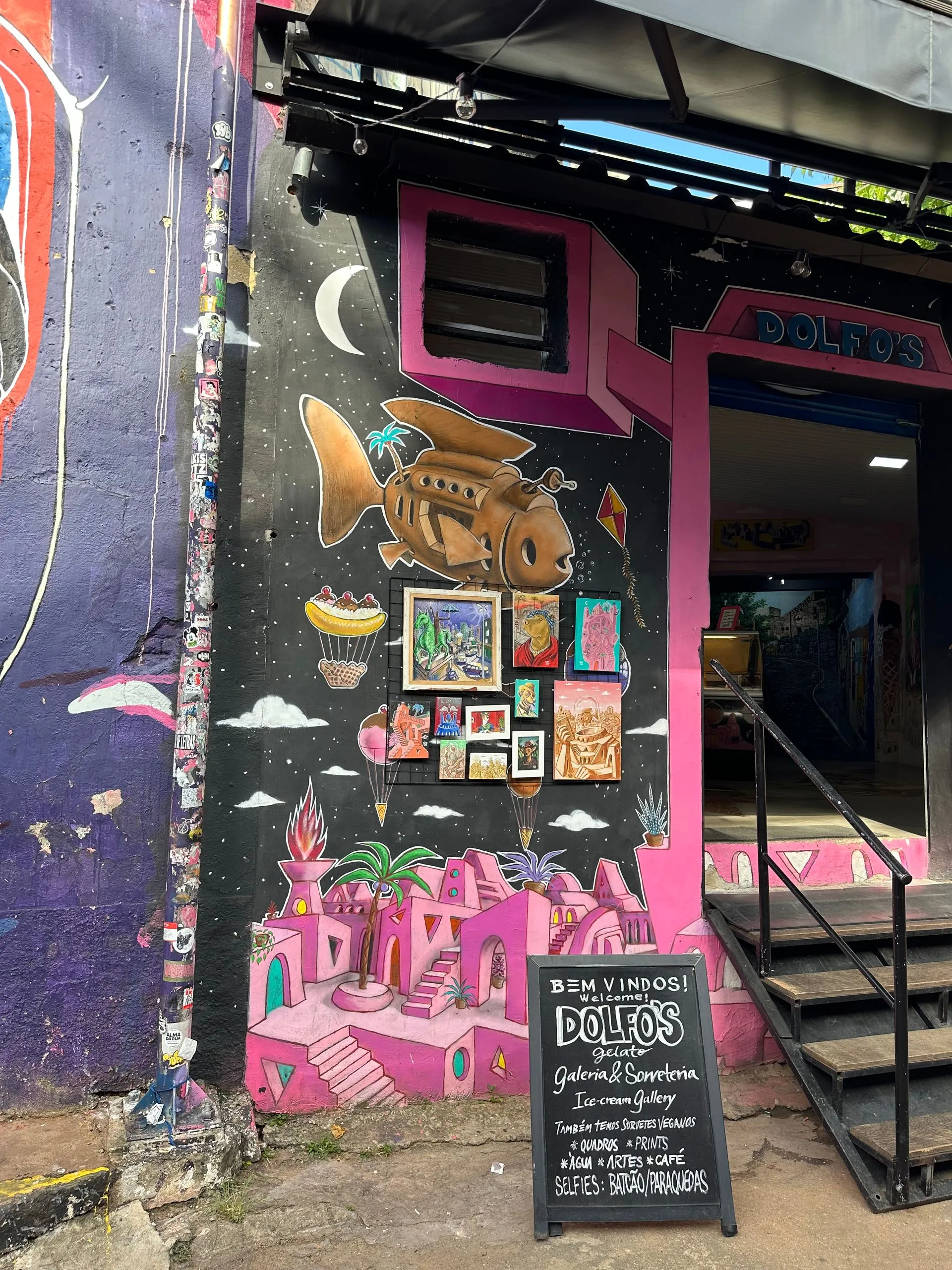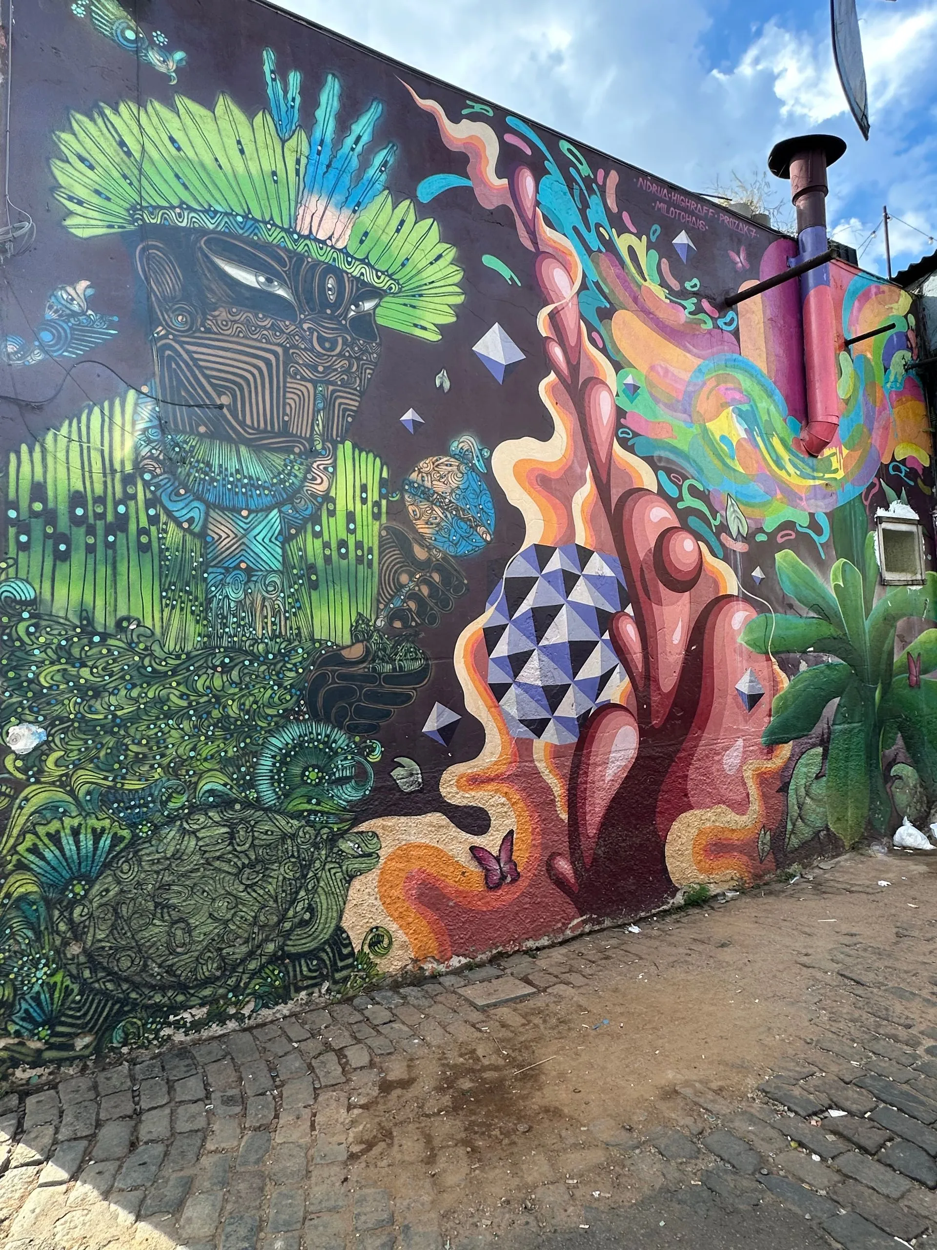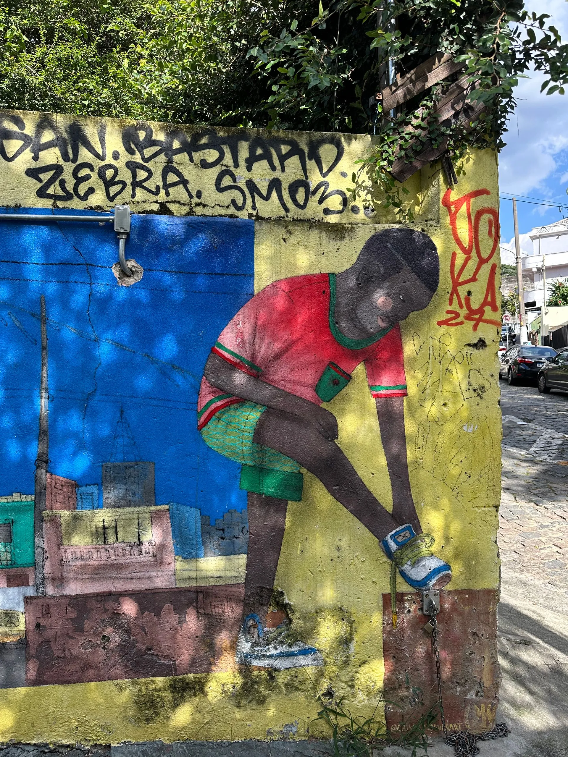 We then drove by Central Square & Performing Arts center ( which was covered by a lot of renovation scaffolding) on our way to the Beco do Batman neighborhood. Back in 1980 one artist did a mural of Batman and then more mural started to sprout here, now several blocks are dedicated to street art and their are lots of artisans and cool cafes mixed throughout.