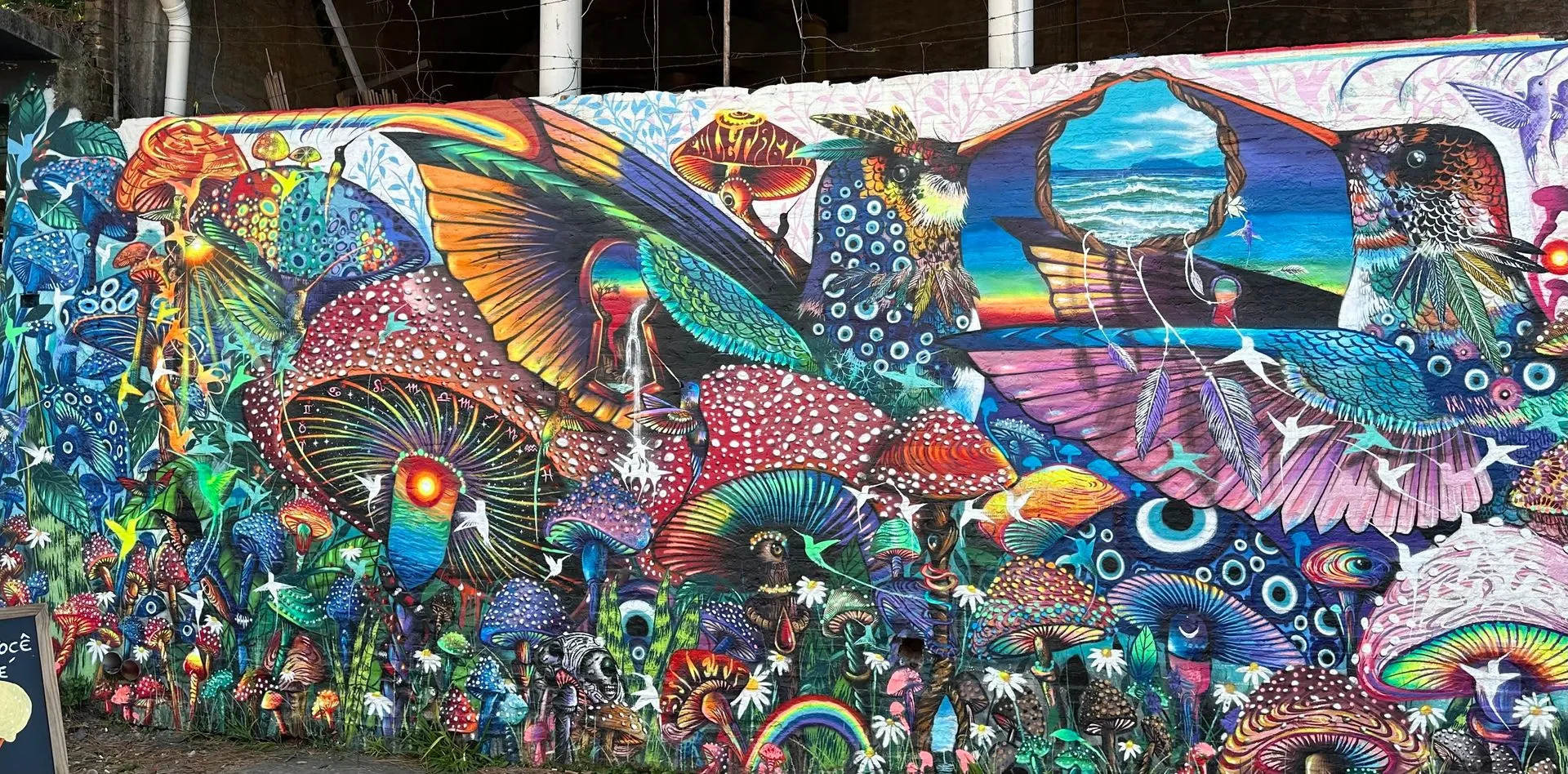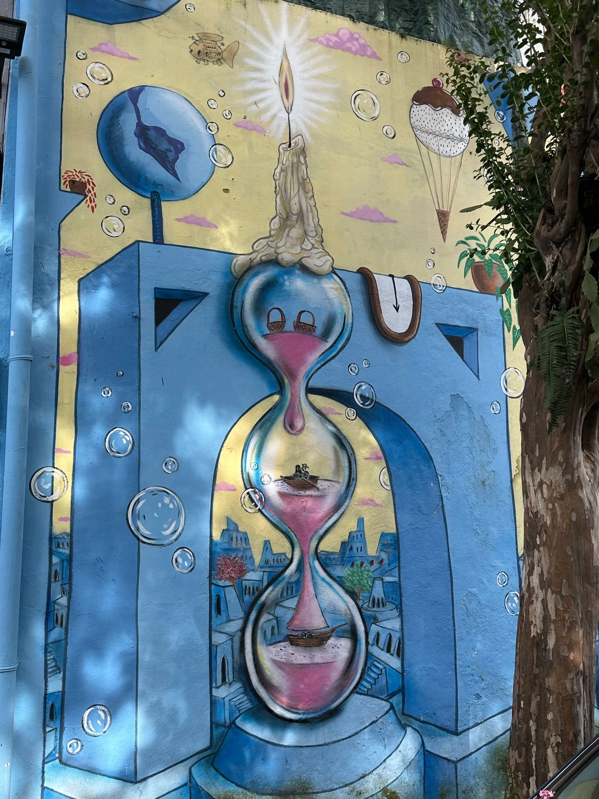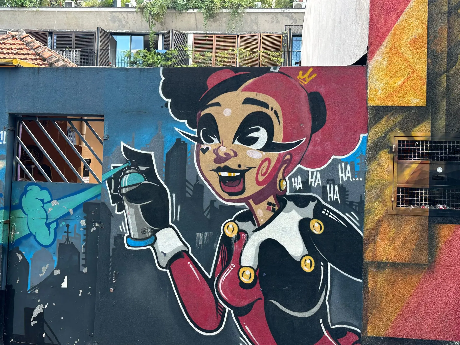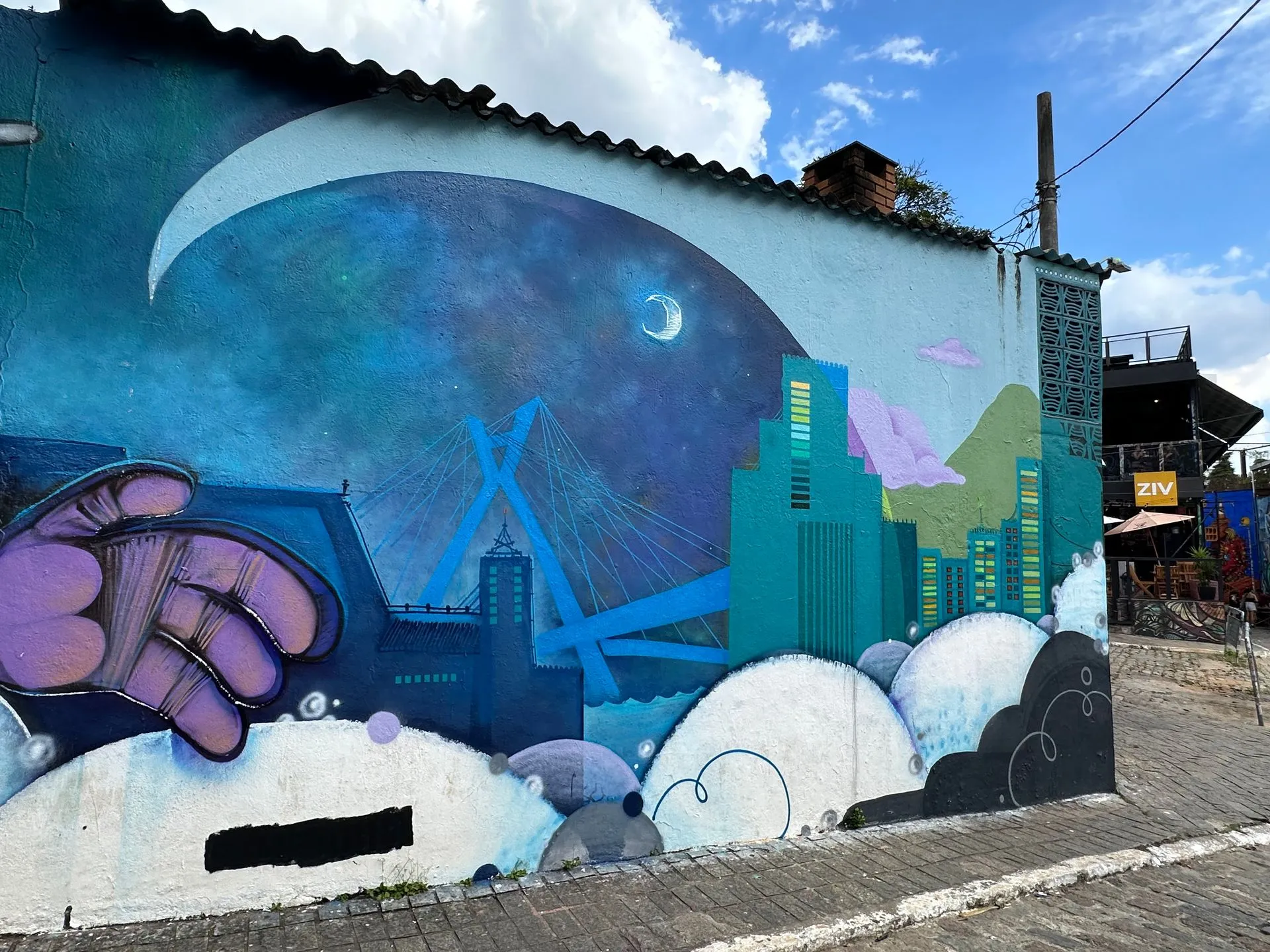We then drove by Central Square & Performing Arts center ( which was covered by a lot of renovation scaffolding) on our way to the Beco do Batman neighborhood. Back in 1980 one artist did a mural of Batman and then more mural started to sprout here, now several blocks are dedicated to street art and their are lots of artisans and cool cafes mixed throughout.