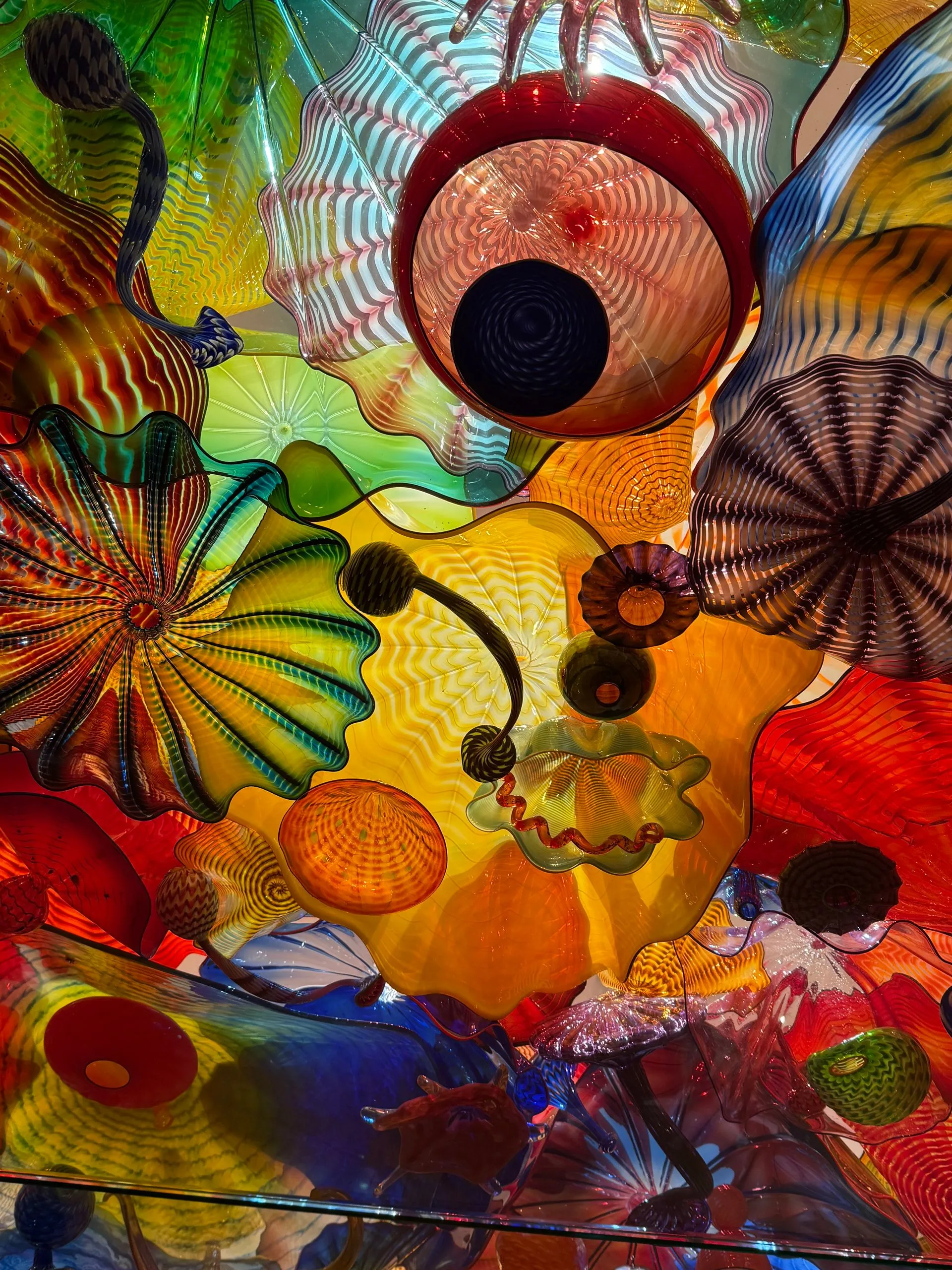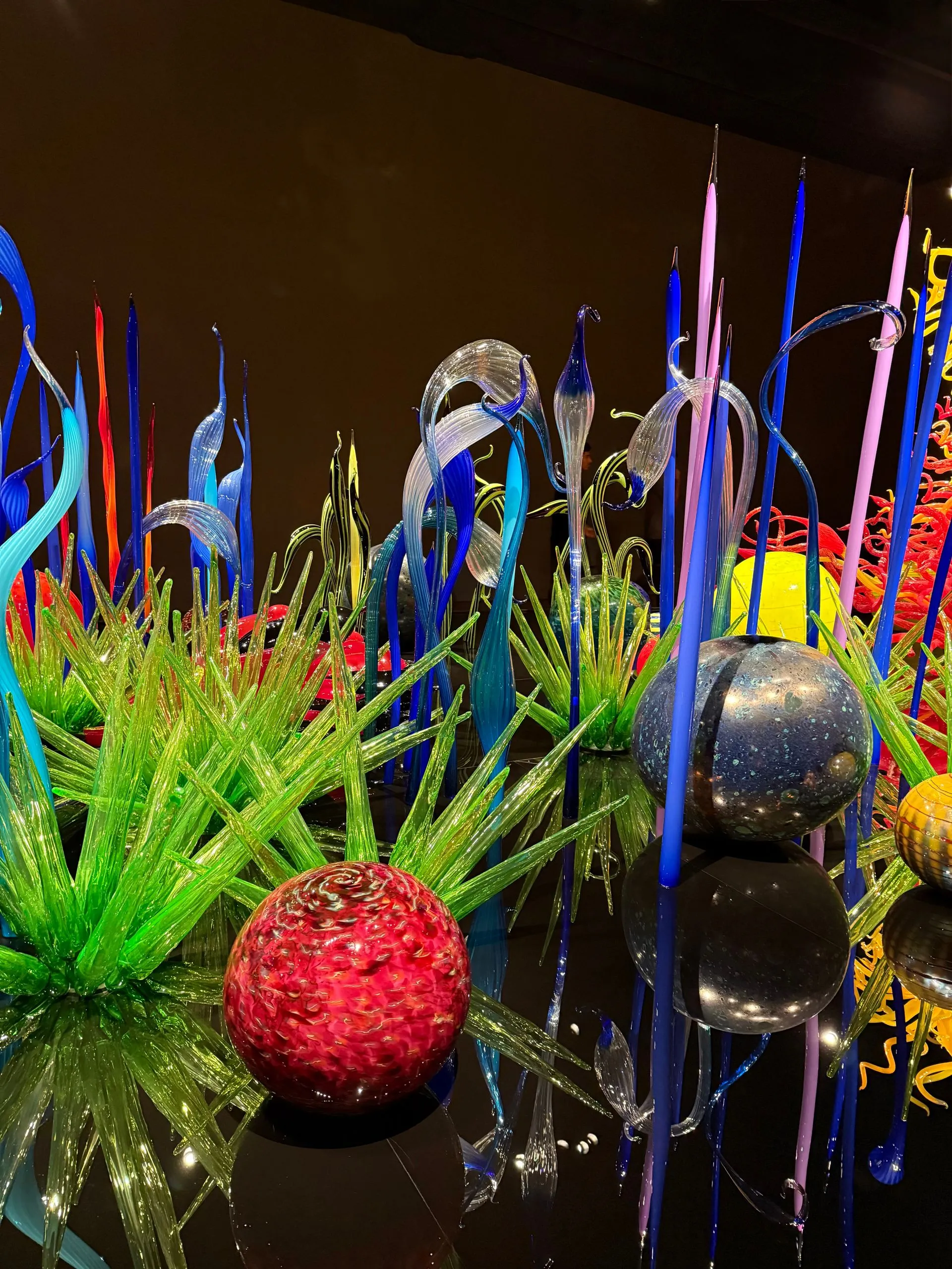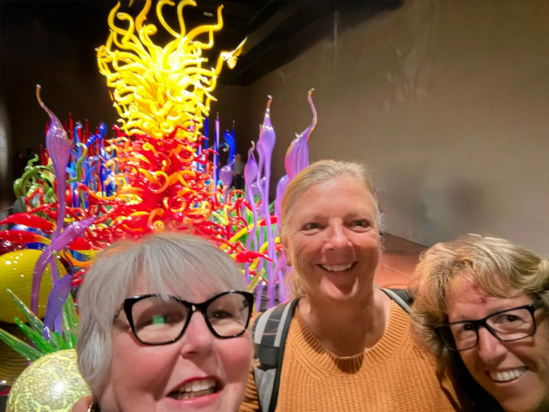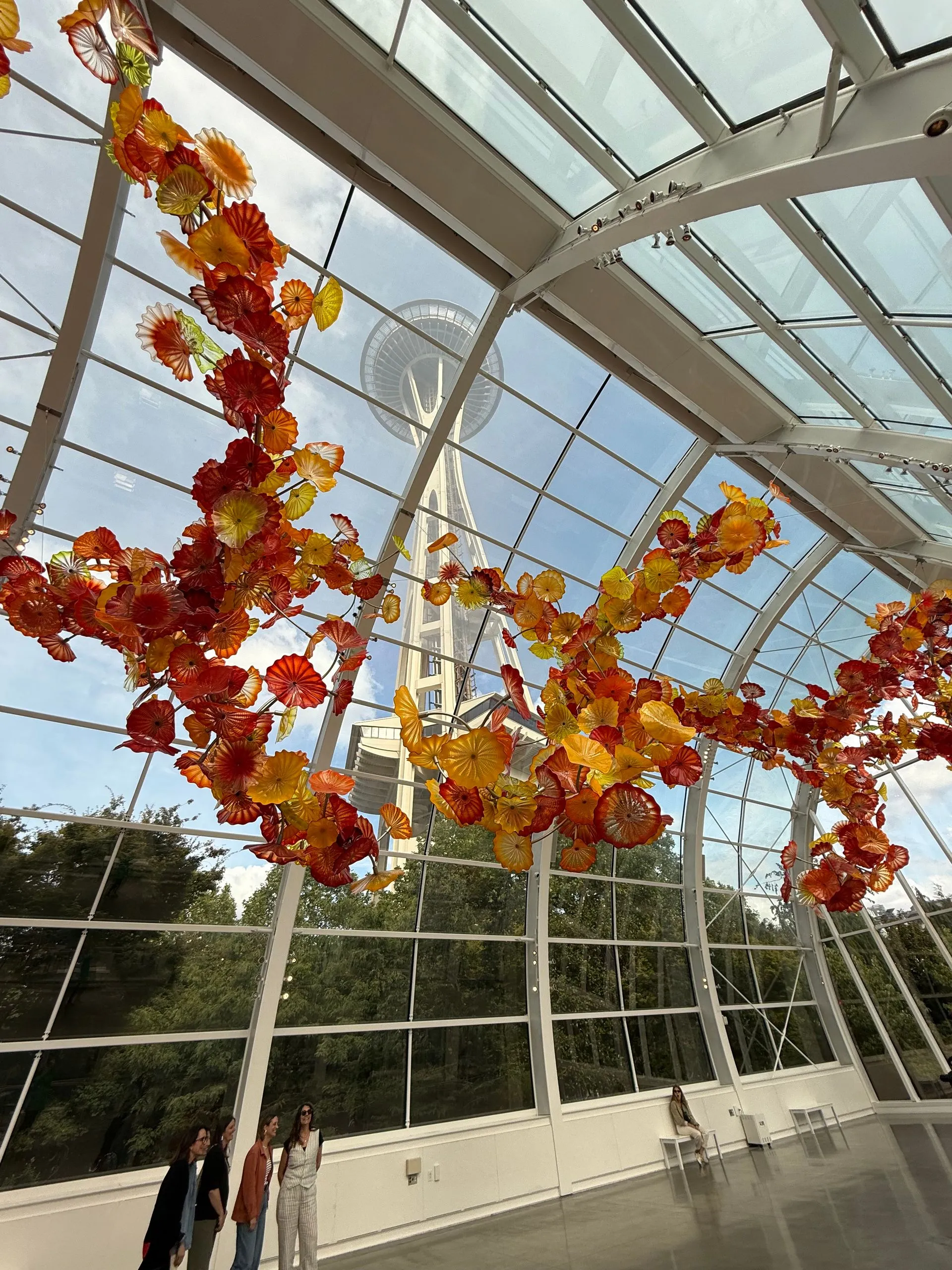 The day started with 6 hours of waiting in Seattle Passport Office with about 20 other ship residents, to get a secondary passport book with 50 pages, to supplement my existing book of 20 pages, as it is quickly filling up with country stamps. Then my good friend Peggy, who recently relocated to Seattle, picked me up and we started the FUN part of the visit. I asked fellow passenger Basia if she wanted to join us and the three of us went to the Dale Chihuly's museum at the base of the Space Needle.