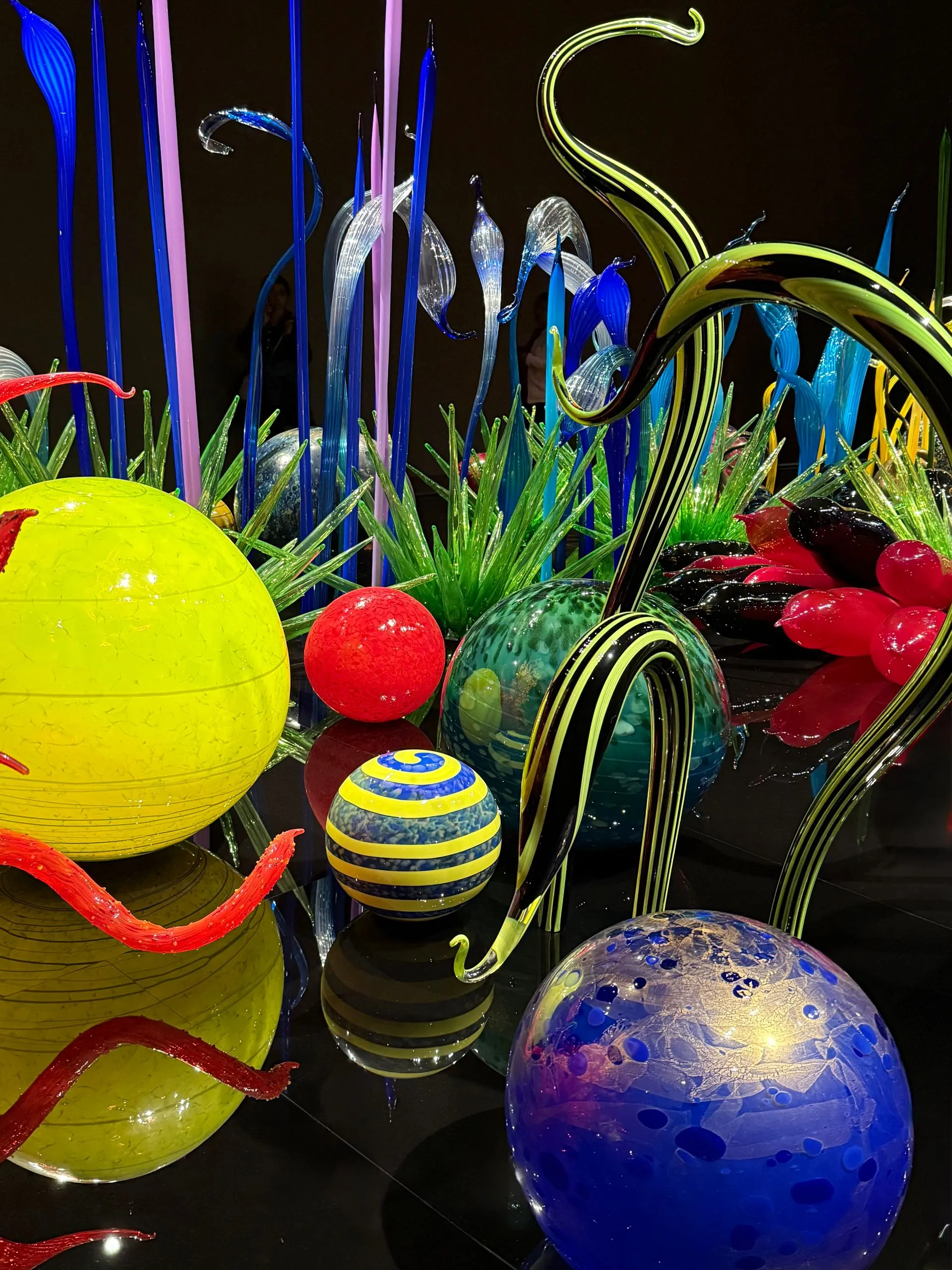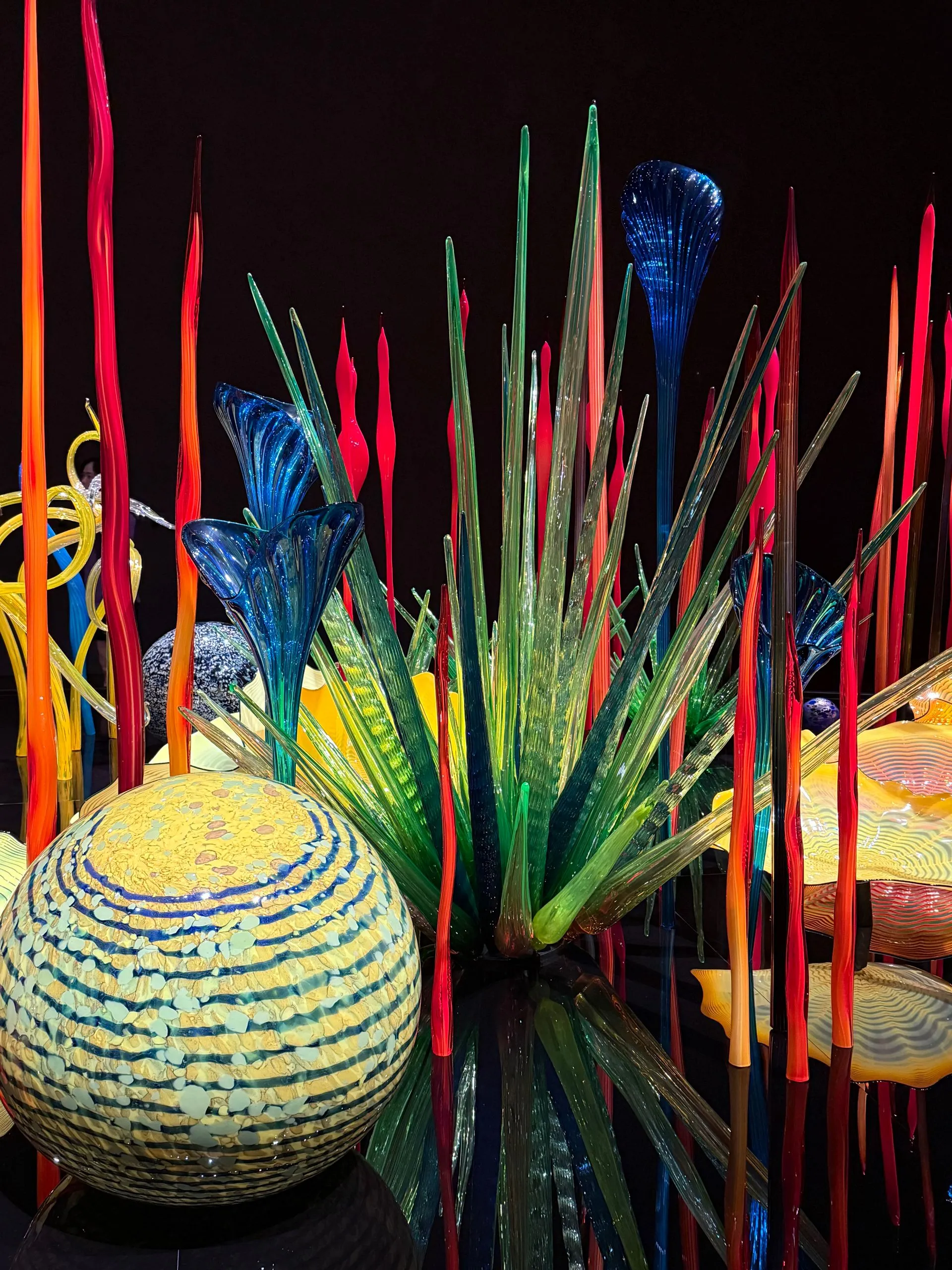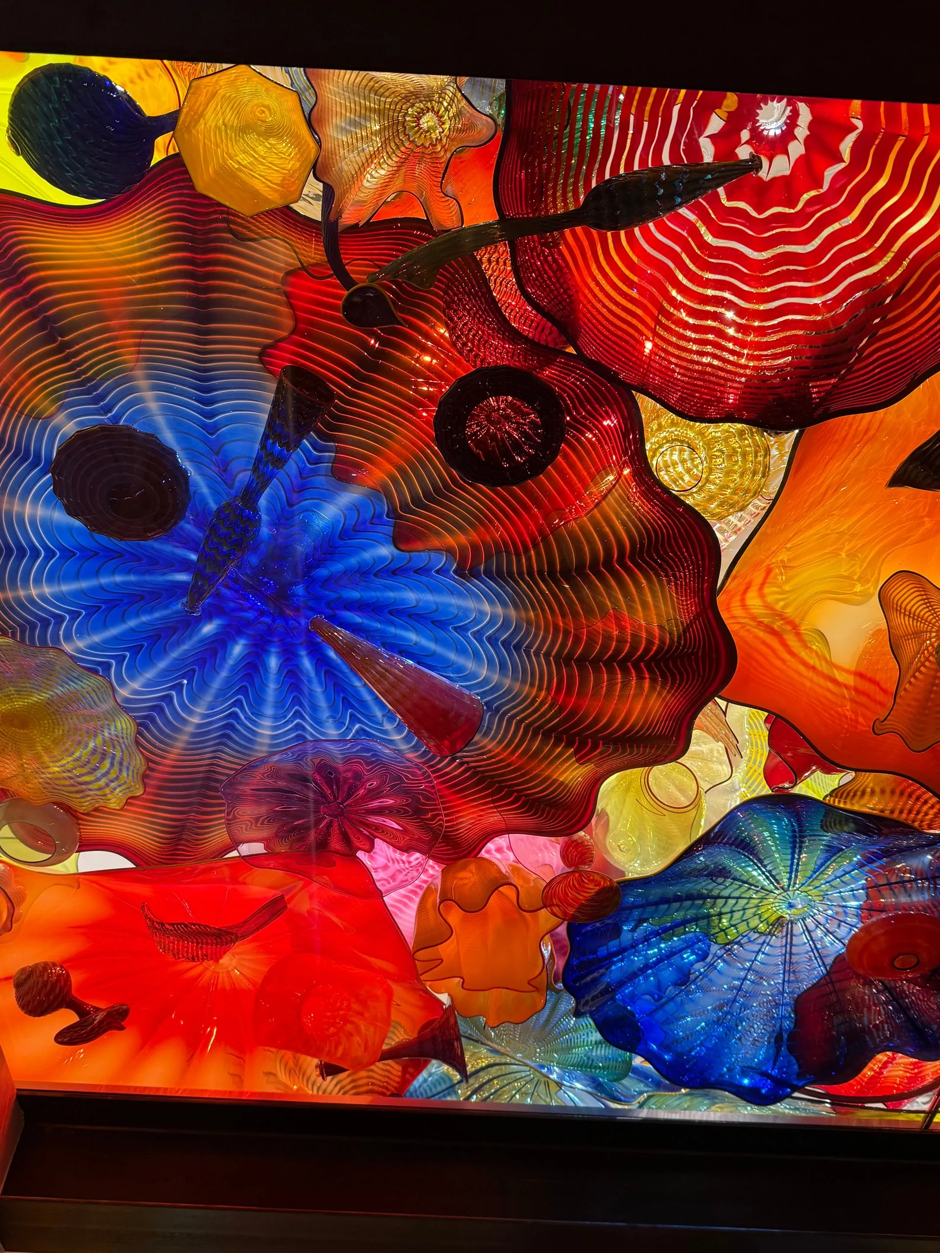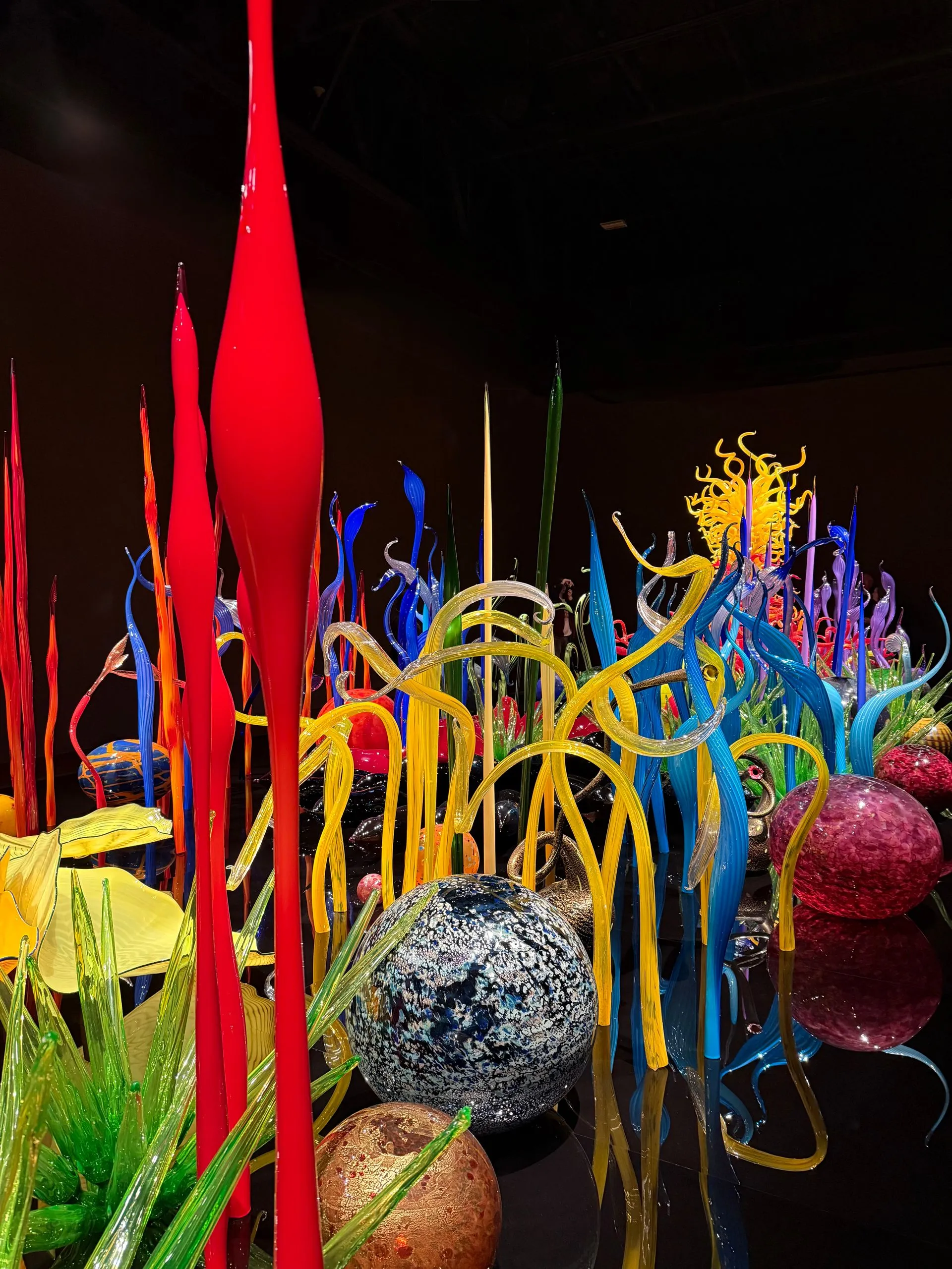 The day started with 6 hours of waiting in Seattle Passport Office with about 20 other ship residents, to get a secondary passport book with 50 pages, to supplement my existing book of 20 pages, as it is quickly filling up with country stamps. Then my good friend Peggy, who recently relocated to Seattle, picked me up and we started the FUN part of the visit. I asked fellow passenger Basia if she wanted to join us and the three of us went to the Dale Chihuly's museum at the base of the Space Needle.