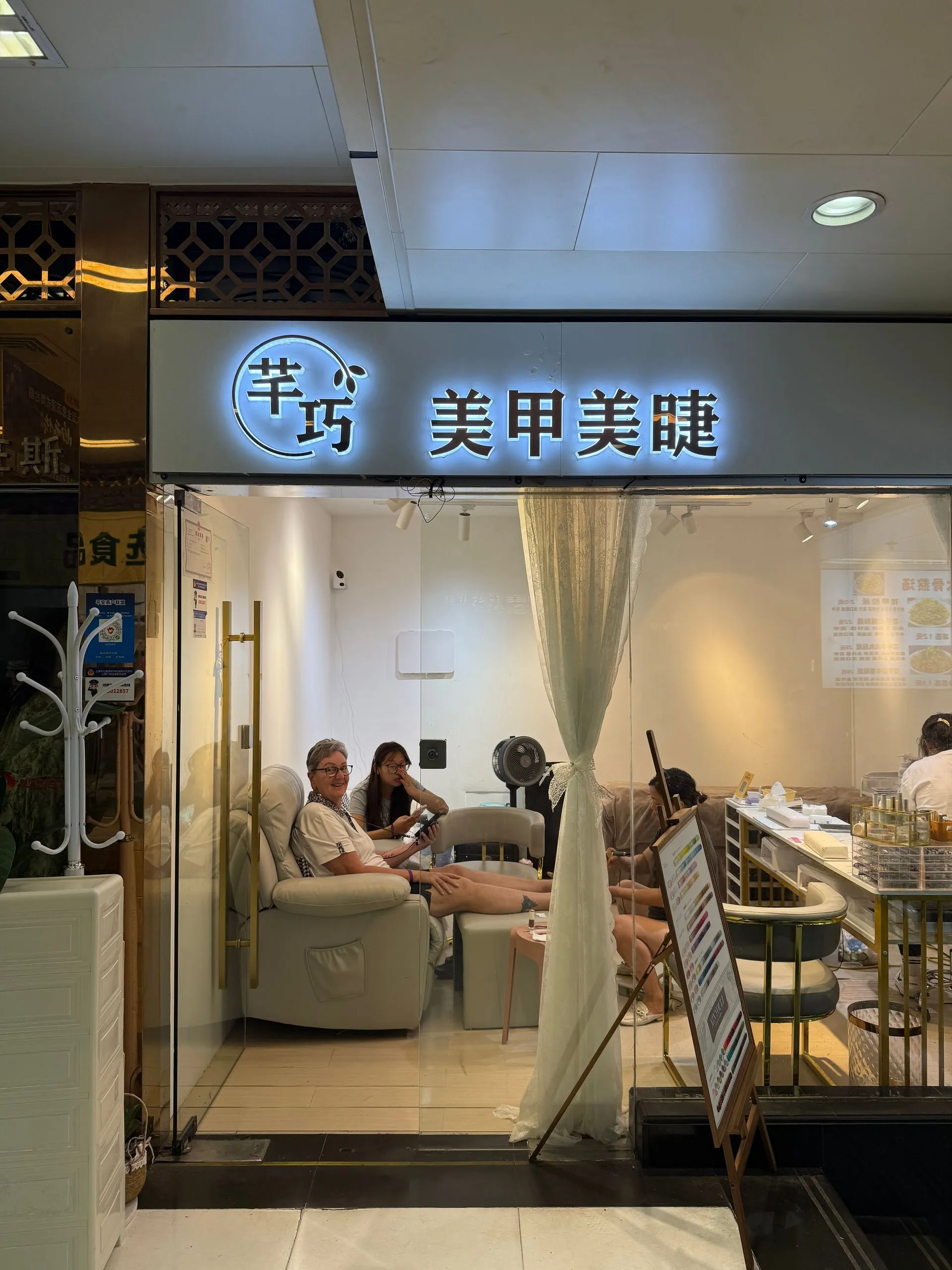 I went with Sherrie to Get a manicure and pedicure - it took about 3 hours and a whole lot of chatter!! Meet the ladies of Qianqiao Nail Art also located underground in the People's Park subway shopping complex. The young 18 year old next to me here was super chatty once she found out we were from USA. You know I love a challenge! Her first question - she wanted to know what social media I used?