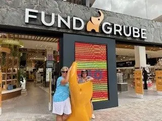 This island totally exist on tourism, so SHOPPING abounds!! There are shops for everything. YUMBO is giant complex right behind our hotel and it also has a ton of restaurants and clubs - a very hopping spot all day long. Today, Peter & Cris and I explored further and took a free bus to another part of the island, Puerto Rico and the bus was provided by the Mogan Mall. Shops were a bit more upscale here but it was interesting to see a more arid side of the island.