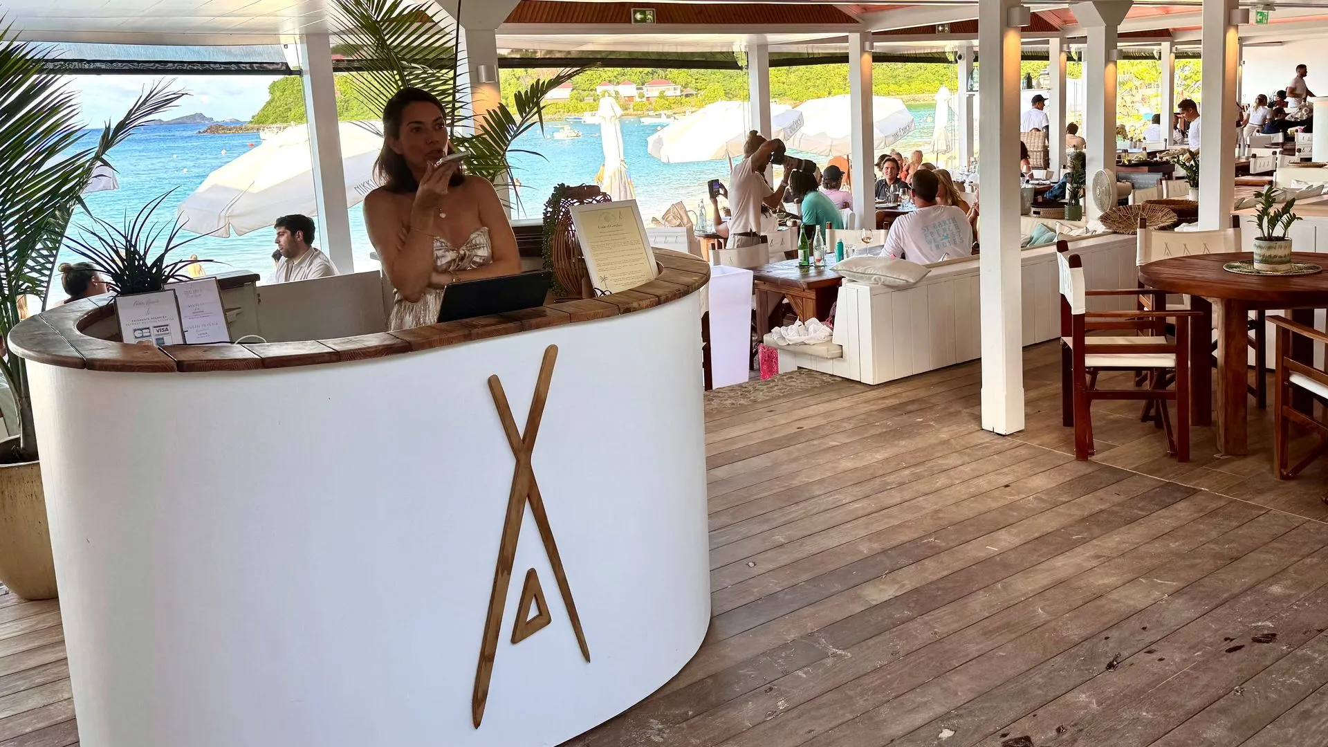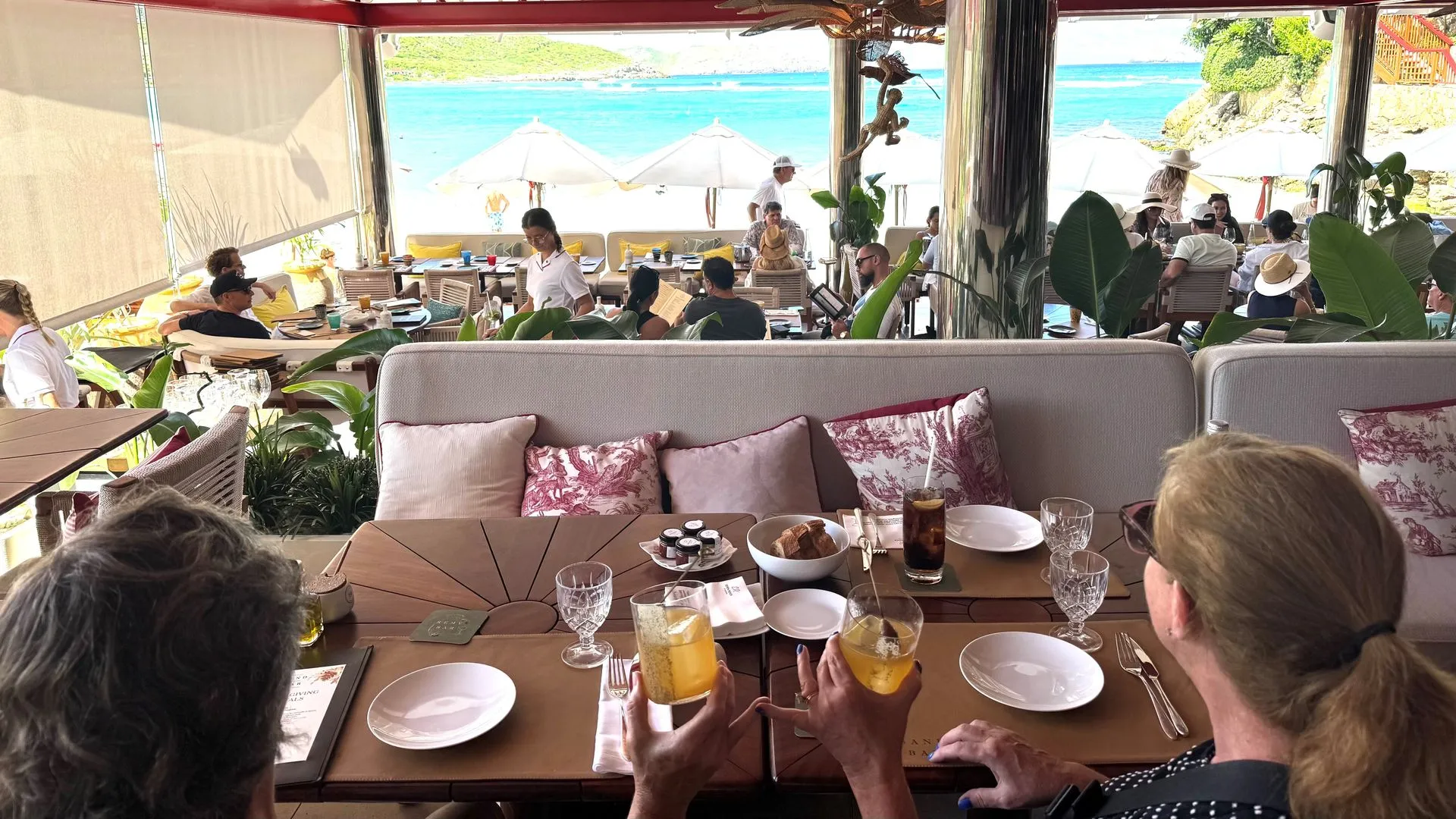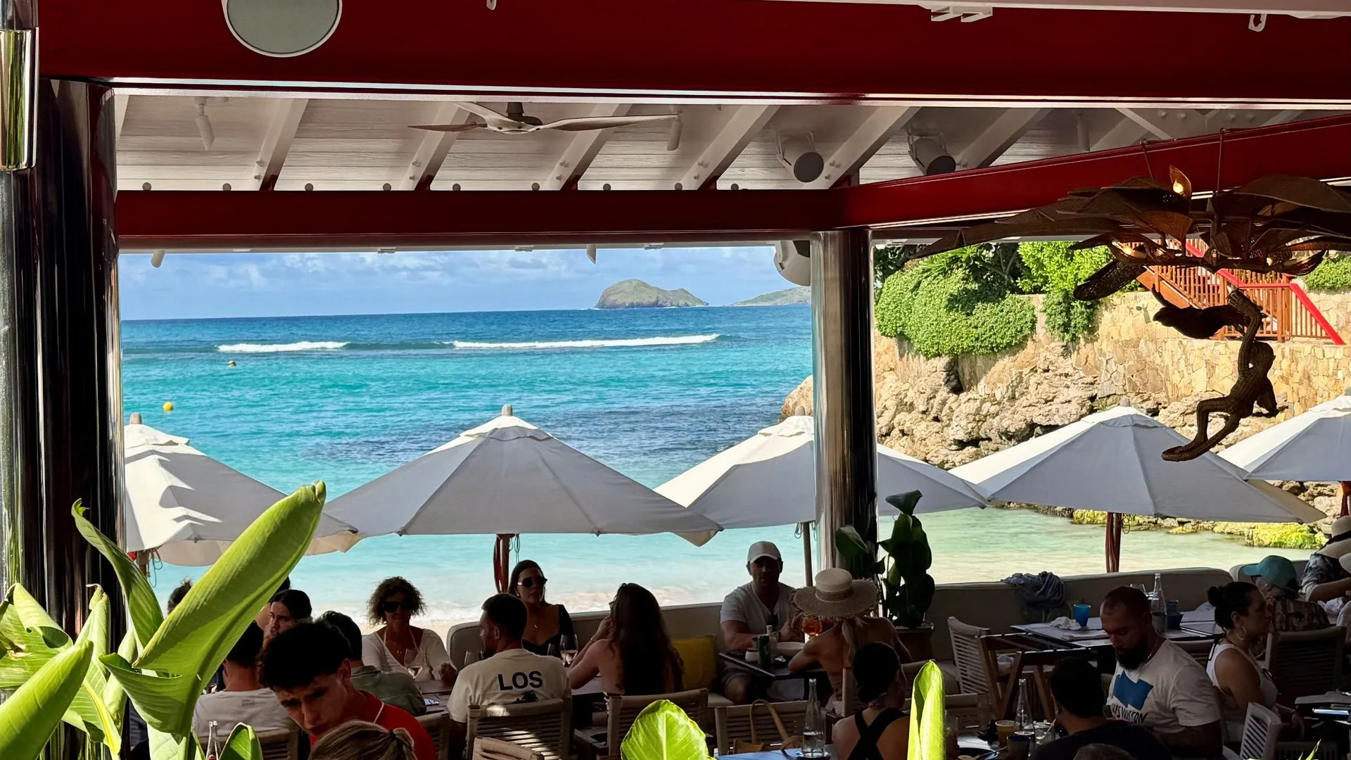 Once the rain let up we hailed a cab, a very chic & pricy mini van type ($44 to go less than 10 minutes) and headed up the hills from the port to the fancy Eden Rock Resort. We had a yummy Thanksgiving day lunch in the Remy Bar and Salon, comfy open air space and situated right on the beach. The Master Chef is the same as the Philadelphia Four Seasons, Jean Georges Vongerichten.