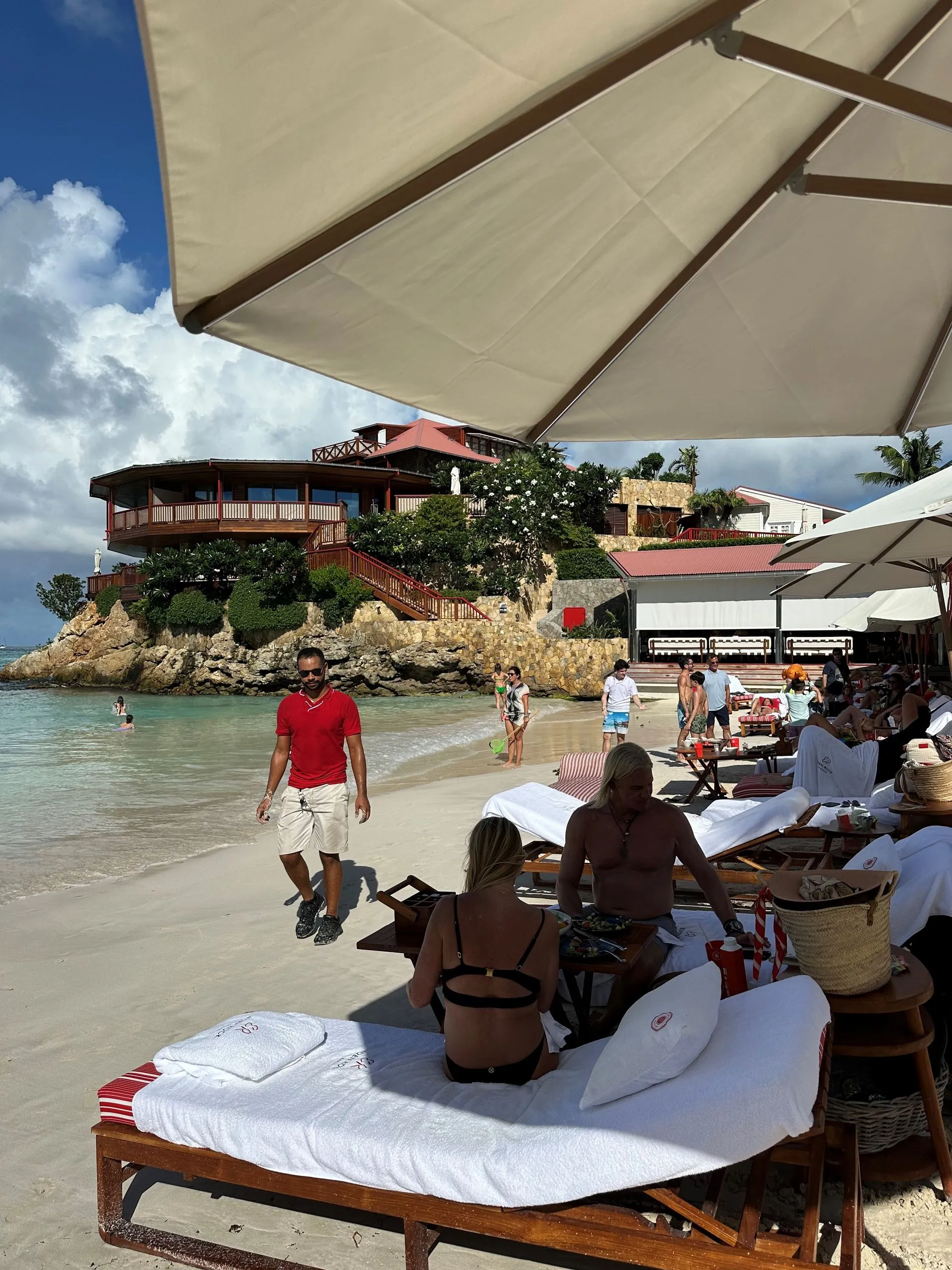 Cousin Cathy decided to give me a glimpse into the upper elite world, via a day trip to St. Barthelemy! We took a 45 minute ferry from Philipsburg, St. Maartins to Gustavia, St. Barthelemy and had to clear customs, both ways. Gustavia is like the Rodeo Drive of the Caribbean - lots of huge yachts and fancy shops line the marina. We had to stay extra-long is D&G because a passing rain shower hit as we were about to exit - very nice sales lady insisted we stay and check out 2nd floor! Was fun see all the iconic items I have vaguely heard about over the years. Rod bought Cathy a bracelet in Hermes for her 60th Birthday!