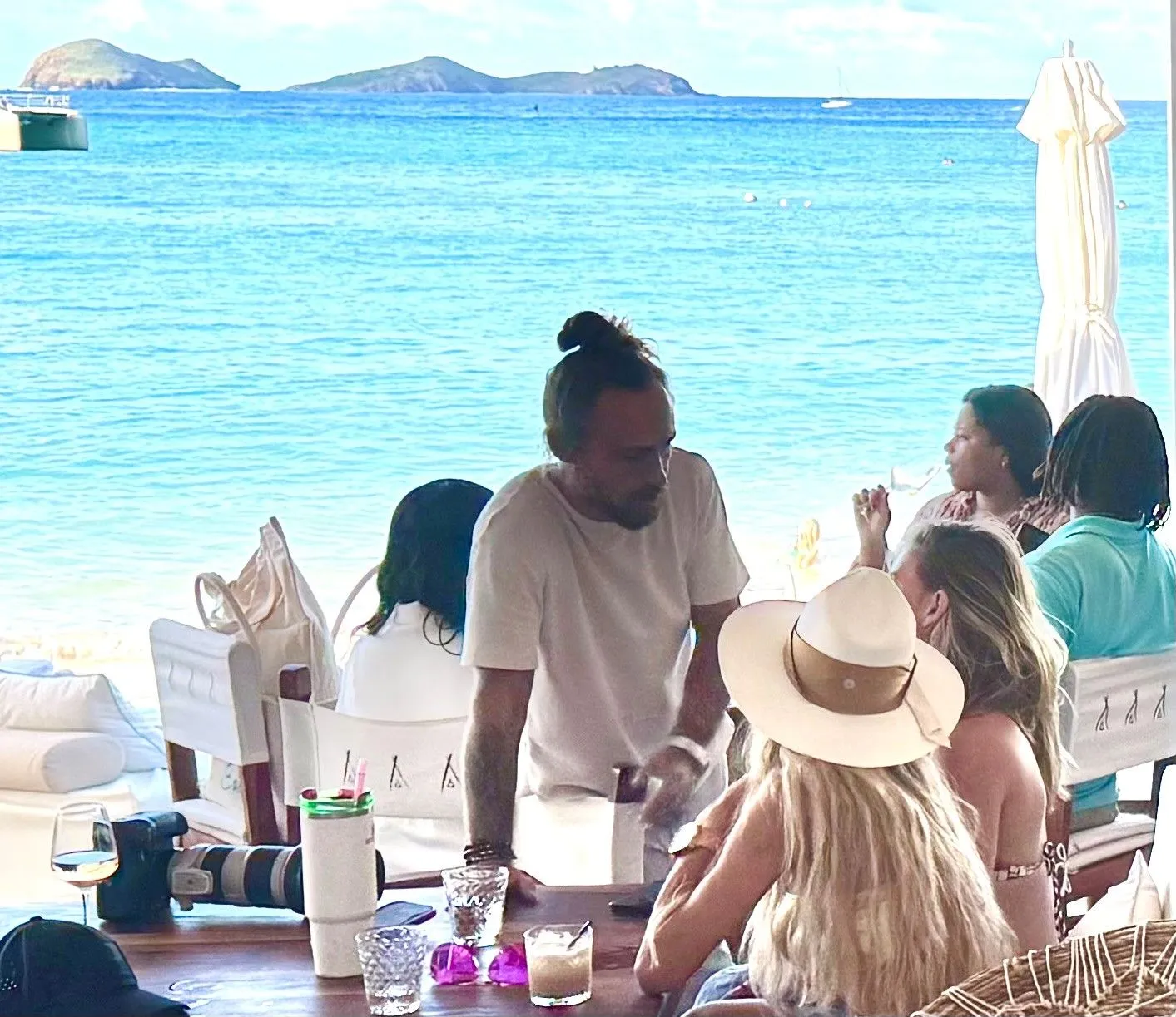 After lunch we strolled some more and took a dip in the ocean and checked out the crowd at the swanky Nikki Beach Club, next door to Eden Rock. Then another pricey cab back to the port, watched sunset and had some drinks at local bar before heading back on Ferry to St. Maartins.