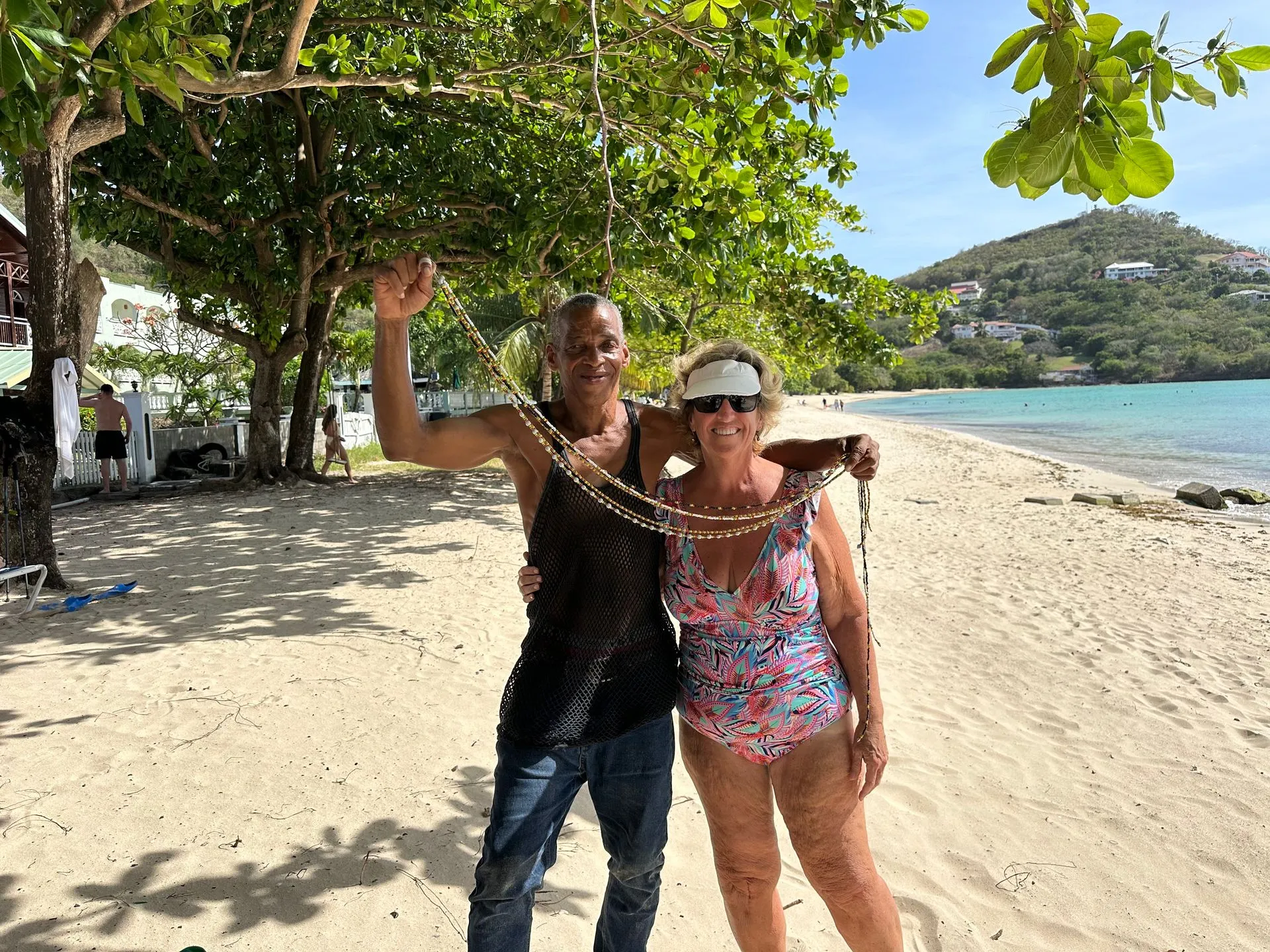 We indulged in GRENADA with two full Beach days! We all needed some lazy R&R time. Day 1, we enjoyed the bustle of beach area of Gran Anse, where we ran into many others from the ship. On the 2nd day we took our van drivers recommendation, and enjoyed a secluded cove at Morne Rouge Beach. Here we saw no other ship residents and just chilled watching crabs run sideways, had a local vendor make me a custom ankle bracelet ( with a 3 year guarantee!), played Cribbage, swam, sunned, chatted and laughed! Paradise Found! Rounded the day off with a Pyramid at sunset!!