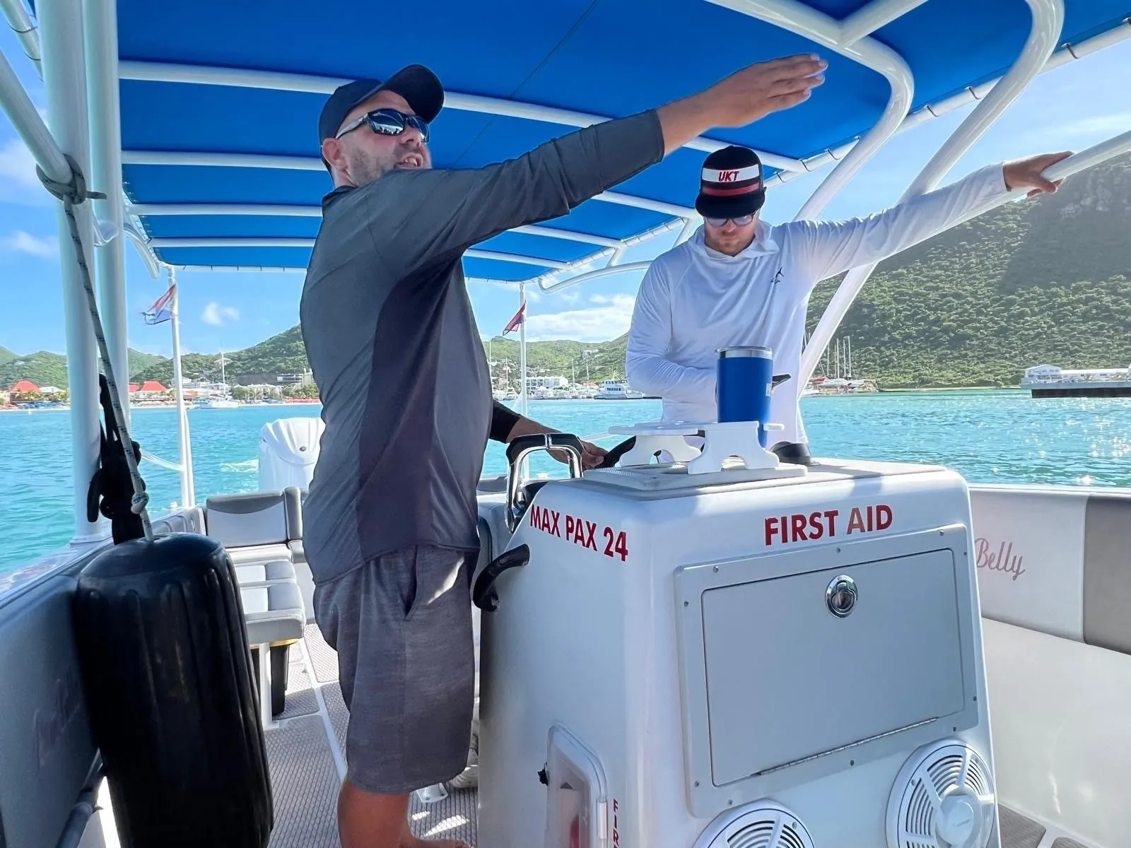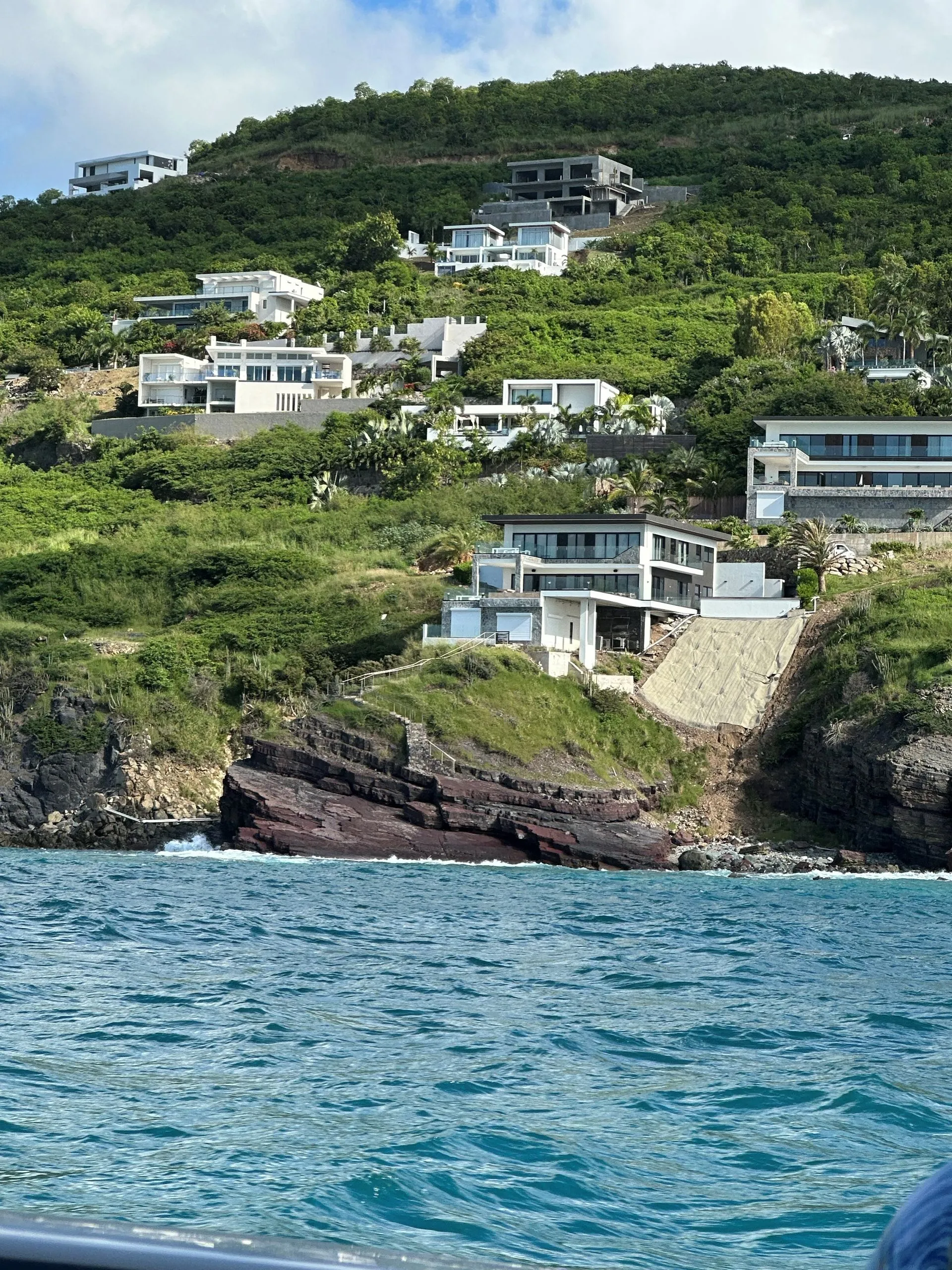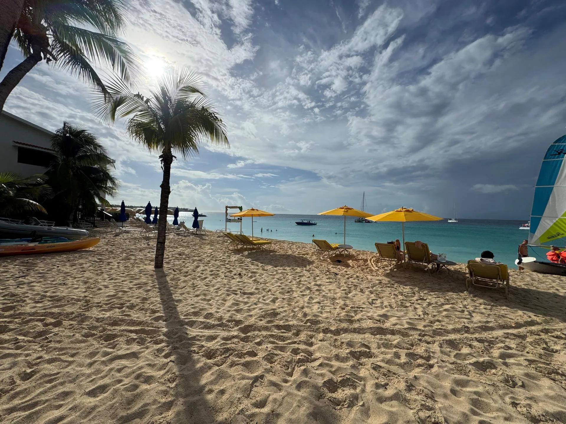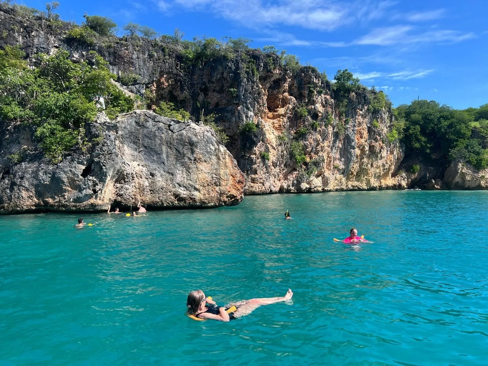 We meet at a marine close to our Ship's mooring and had 7.5 hours to tour. First, we came out of south side of St Maartins, on the Dutch side, past the airport and headed north to Anguilla, across the canal, with French side of St Martins in the distance. We first went to Rendezvous Bay for a swim, then onto Little Bay to swim and snorkel. We had a lunch stop at Roy's on Sandy Ground Beach, and another snorkel and swim stop at Meads Bay. The weather was good with a quick shower hitting while we were at Lunch and again on our ride back to the marina. We stayed a little longer at each stop than was planned because Shoal Bay, the furthest out destination was experiencing high winds and waves.