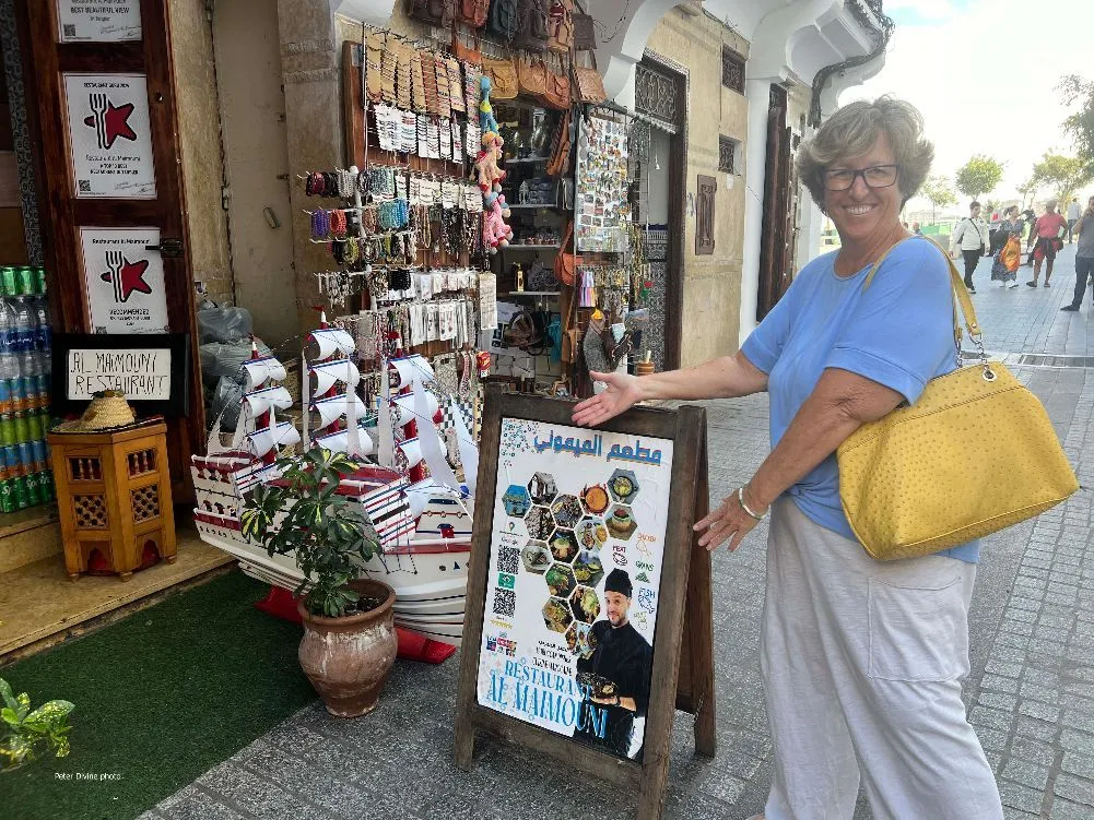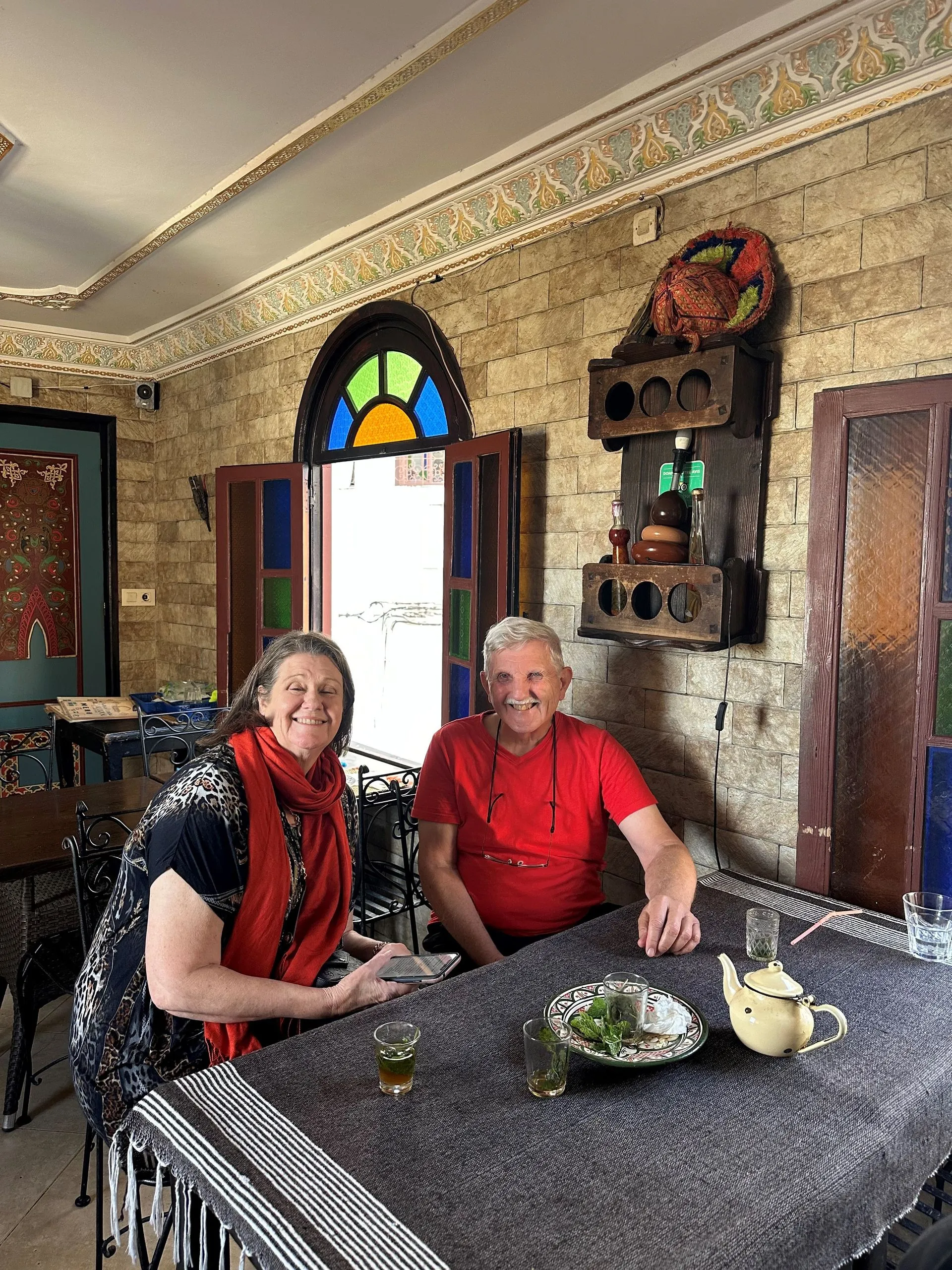 We had lunch in an authentic Turkish restaurant with the Medina walls. Yummy chicken tangine w/ apricots, dates, sultans and almonds; couscous; fresh bread olives and eggplant dip and sweet mint and dates with nuts for dessert.