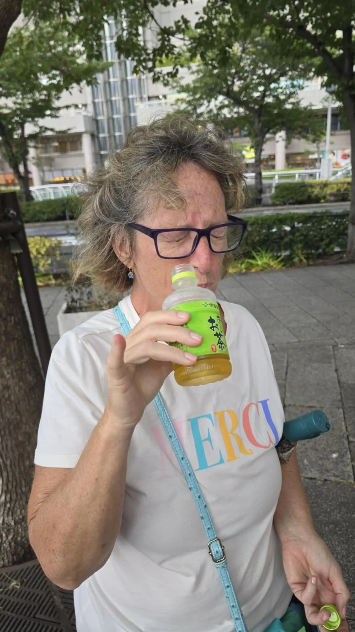 These were very tasty. The unsweeted green tea below - not so much! Imagine tree bark boiled with a used dull tea bag! I did offer a taste to my friends right after these photos, No takers! They can't all be winners!