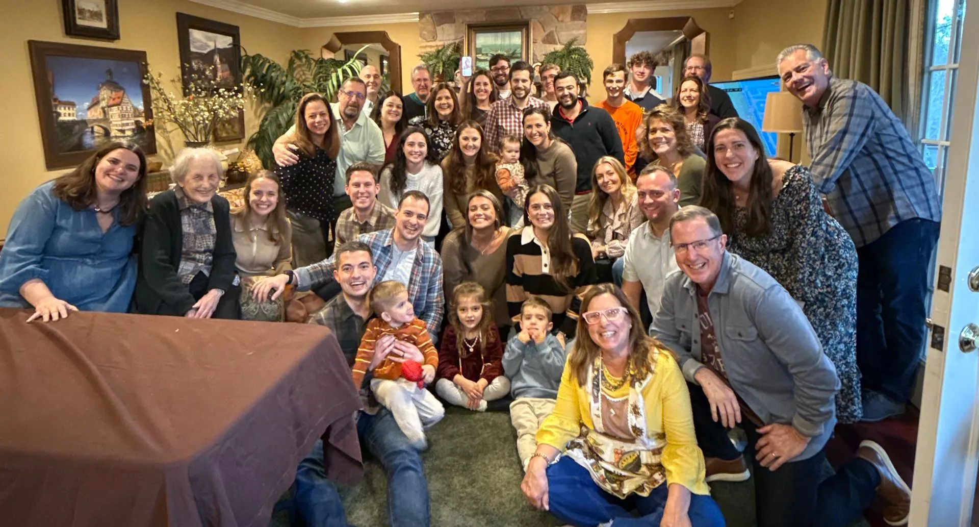 I got to talk to video chat with my whole family ! It was like speed dating, got about 2 minutes with each of them as the passed me around the house - loved it got to have fast conversations with them all to catch up on what is going on since I last saw or talked to them. So rare to get to do that all in one call and love What's App Video call for this magical free technology!! I think there was 43 of them at my brother Michael's house and you can see me on the video call on the phone in the back! I made the FAMILY PHOTO!!