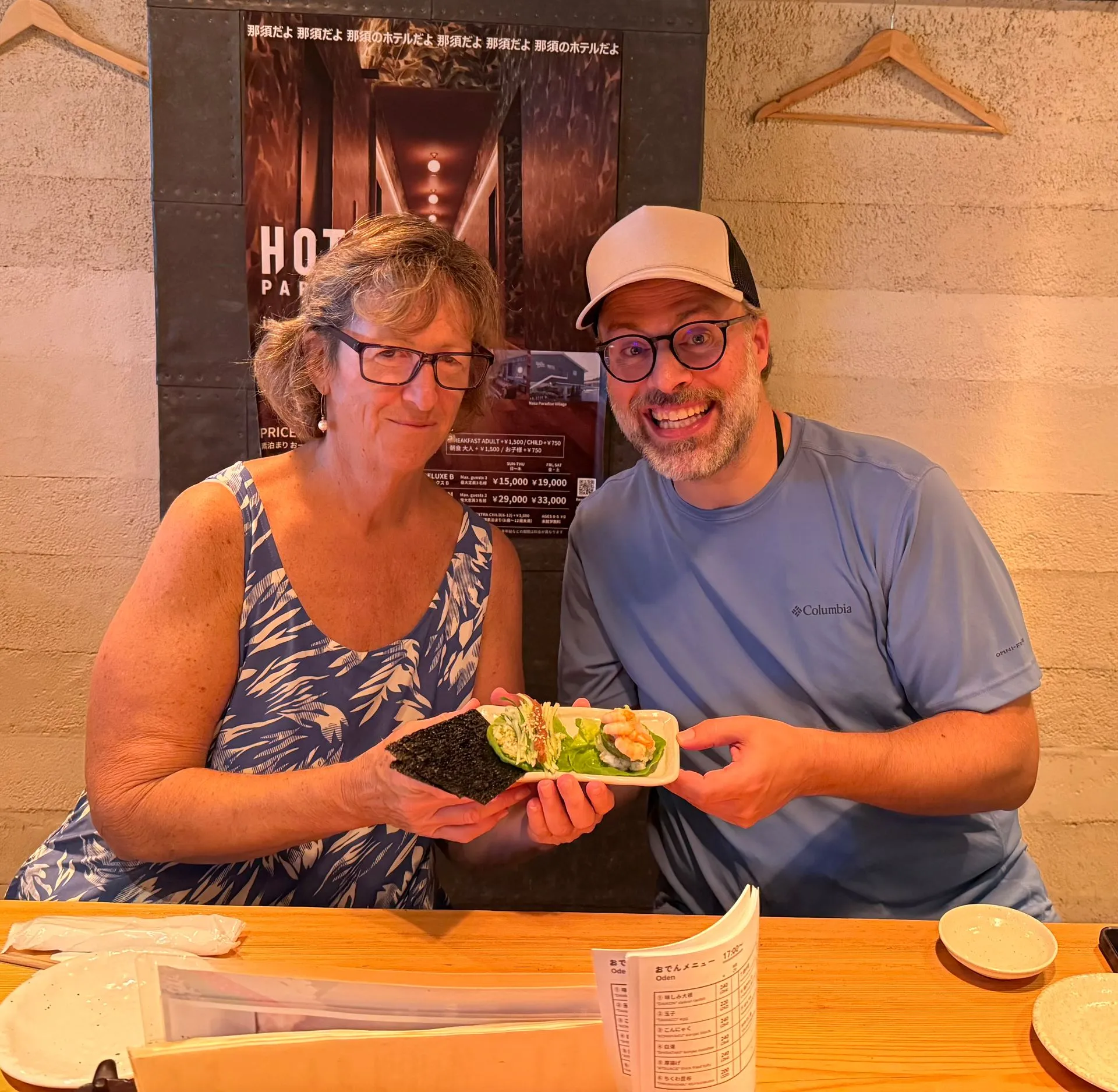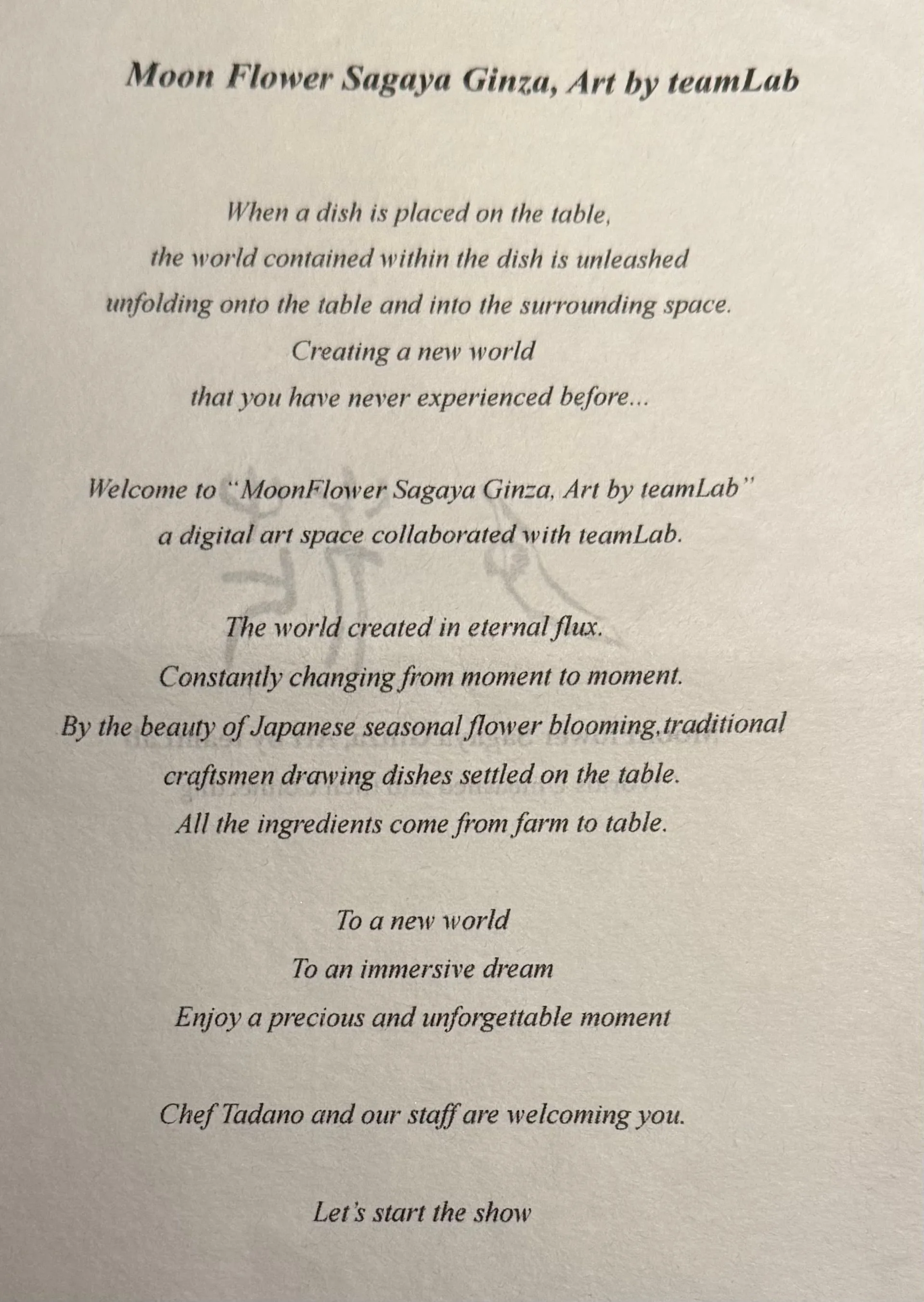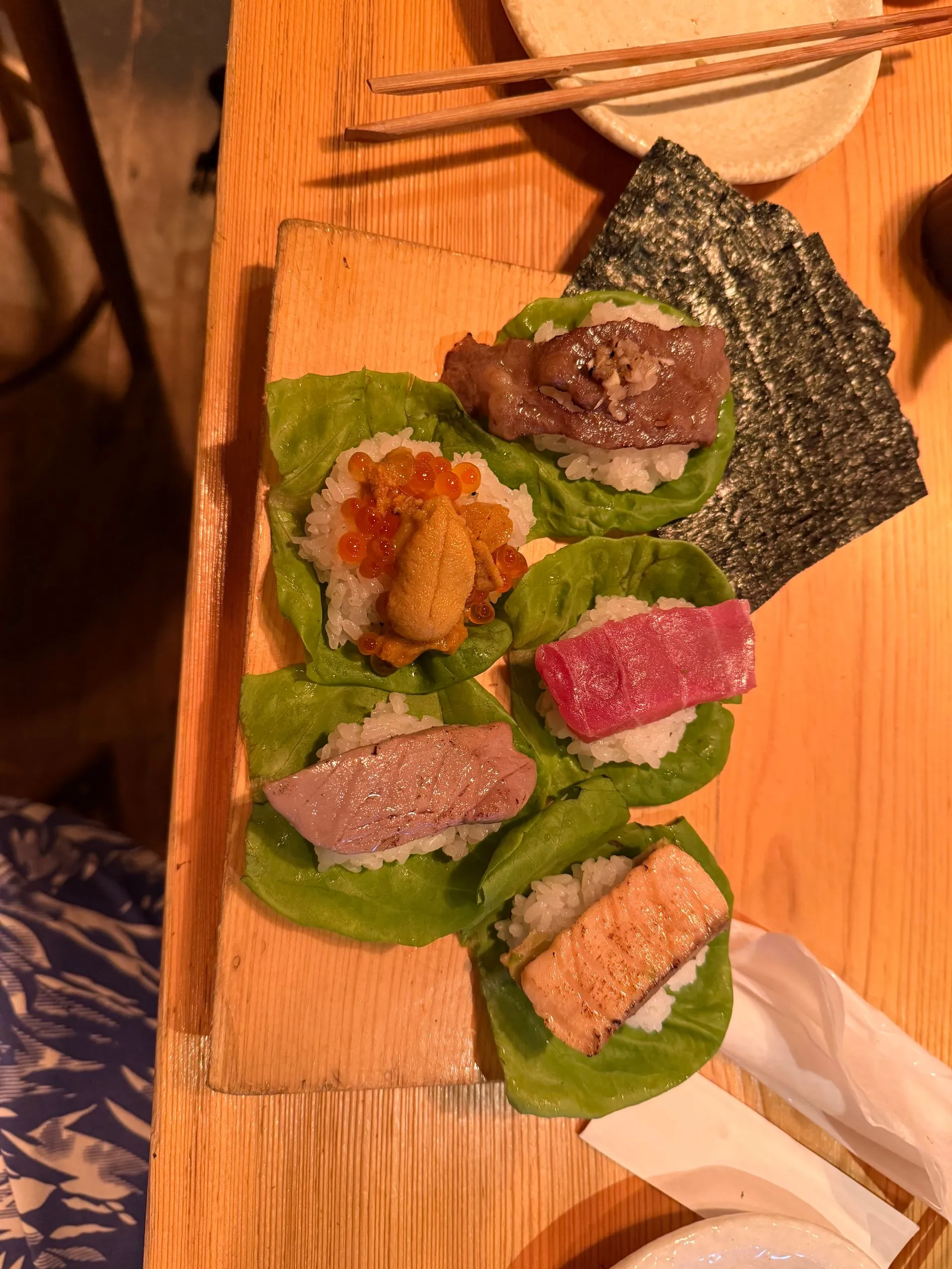 For a special treat we went to a fancy dinner at MoonFlower. The restaurant only takes 8 diners a night and the whole meal is presented as an art interactive art piece. Nine course - seven were amazing! Saga the top cut of Waga Beef melted in your mouth. I never knew beef could taste so good!!!!