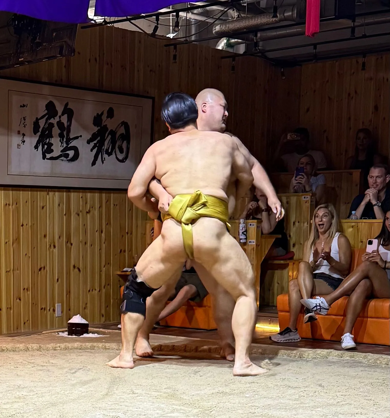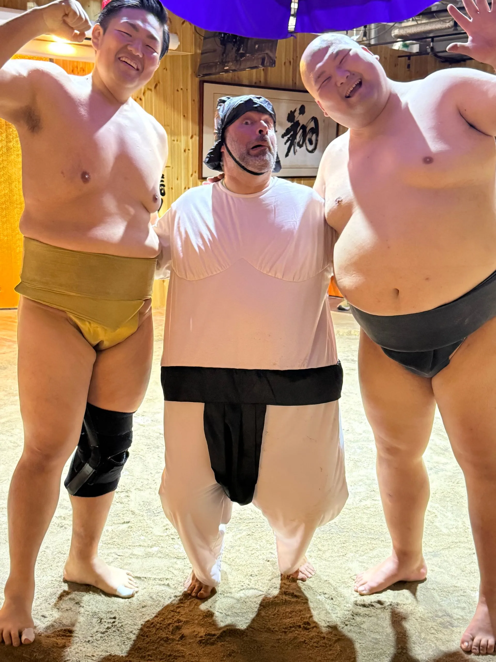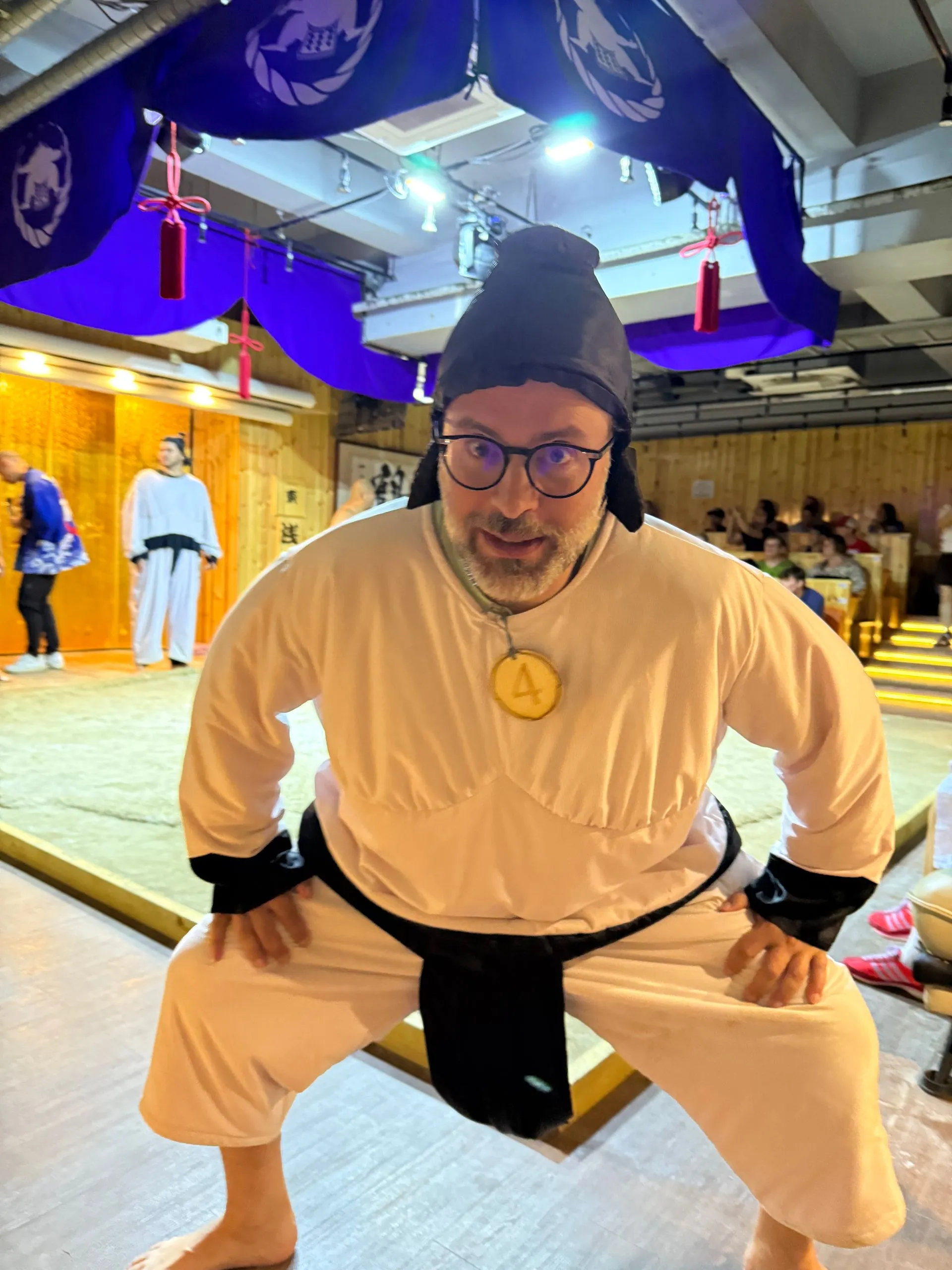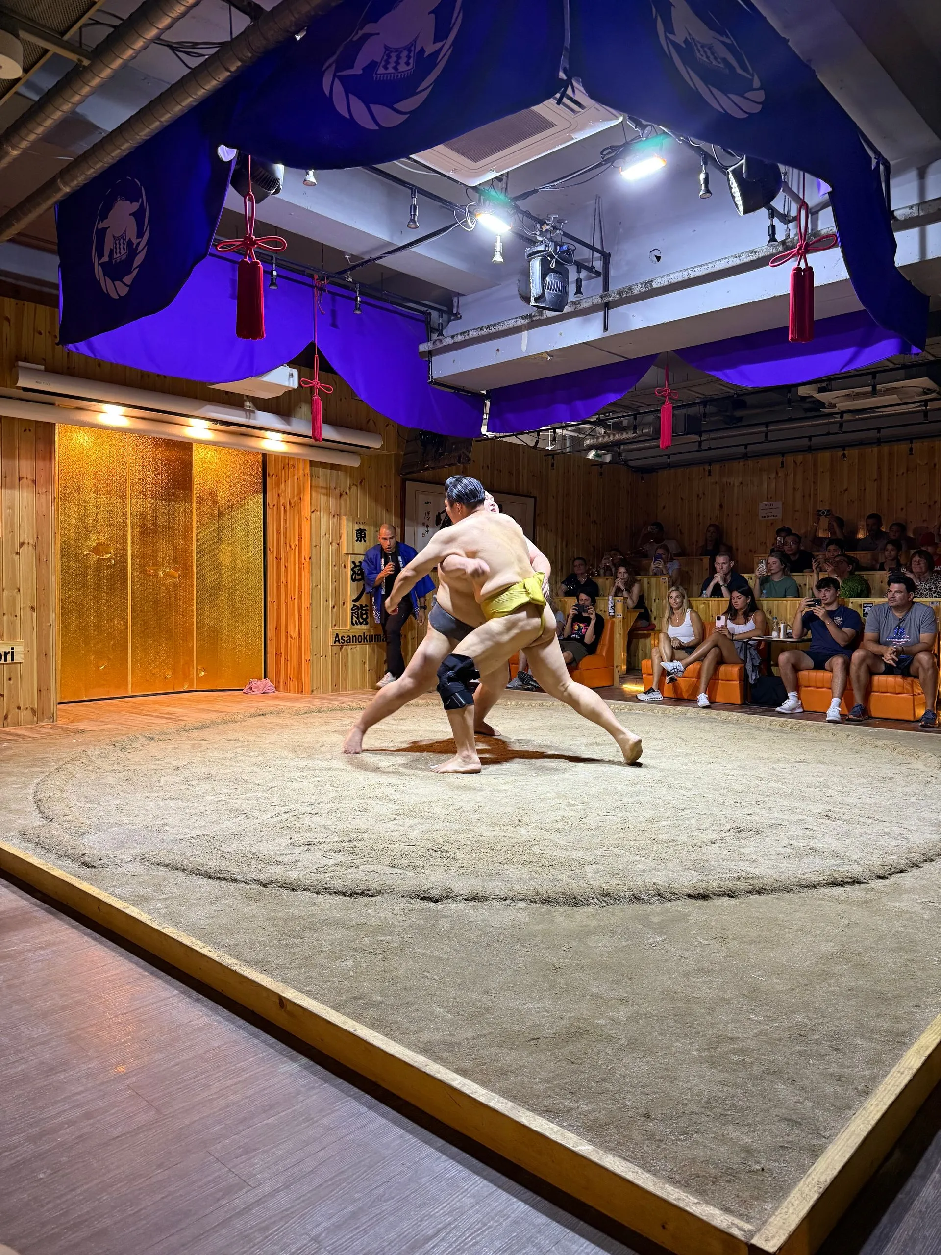 After 2.75 hours in Borderless we dashed over to our Sumo lunch show. This was highly recommended by my girlfriend Meagan, who was recently there, and I am so glad she told us to do!! Again tons of Fun, the lunch was super yummy and you could have as much as you wanted, I had seconds !! Bosco got picked to be one of 8 competitors to take on the wrestlers - he was pumped!! Sadly he didn't win his match, but gave it an enthusiastic try!