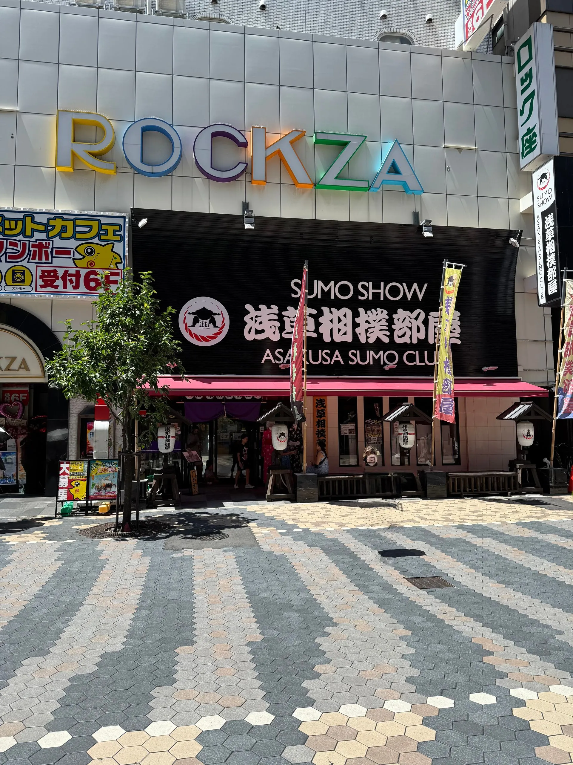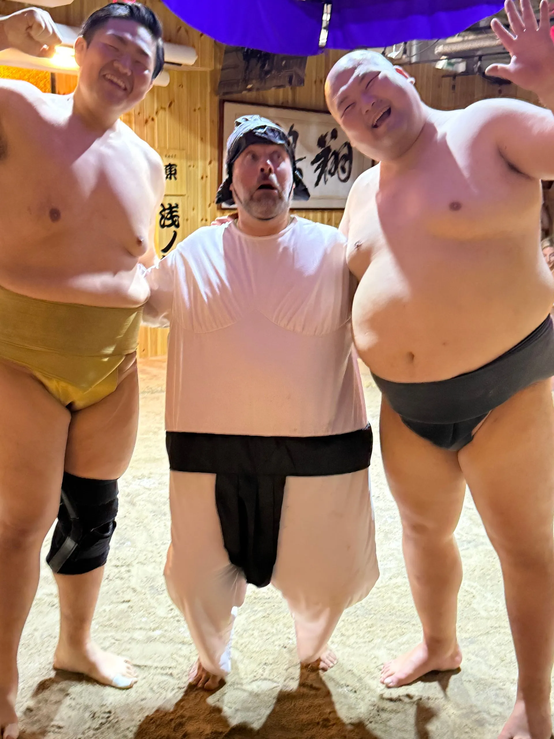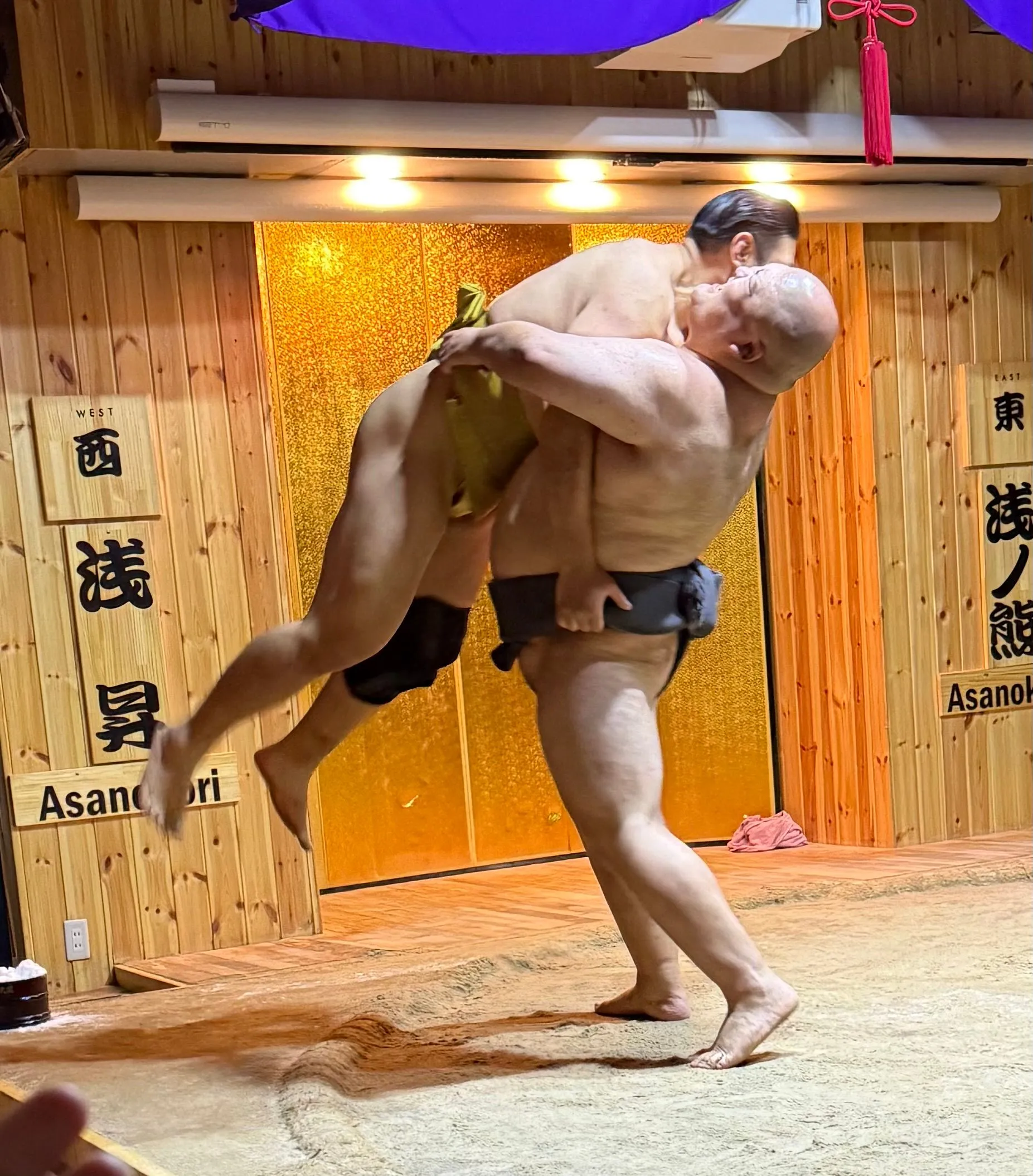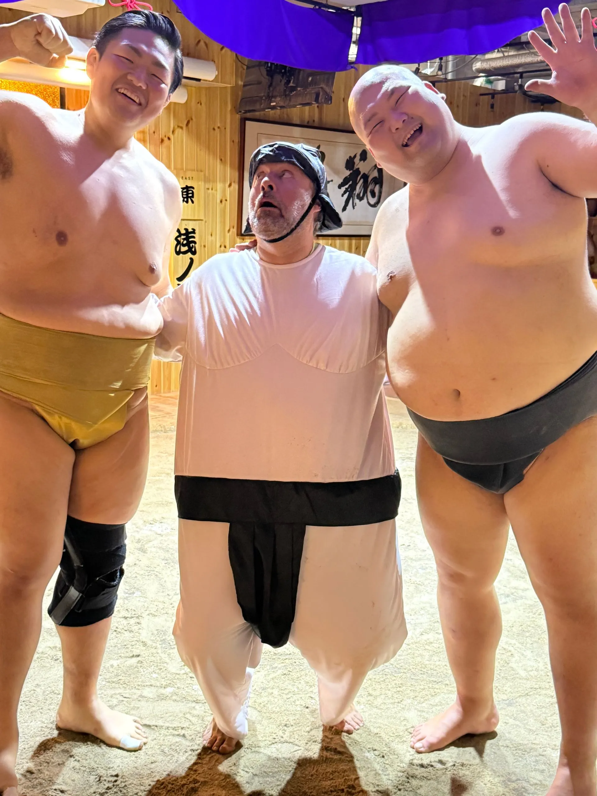After 2.75 hours in Borderless we dashed over to our Sumo lunch show. This was highly recommended by my girlfriend Meagan, who was recently there, and I am so glad she told us to do!! Again tons of Fun, the lunch was super yummy and you could have as much as you wanted, I had seconds !! Bosco got picked to be one of 8 competitors to take on the wrestlers - he was pumped!! Sadly he didn't win his match, but gave it an enthusiastic try!