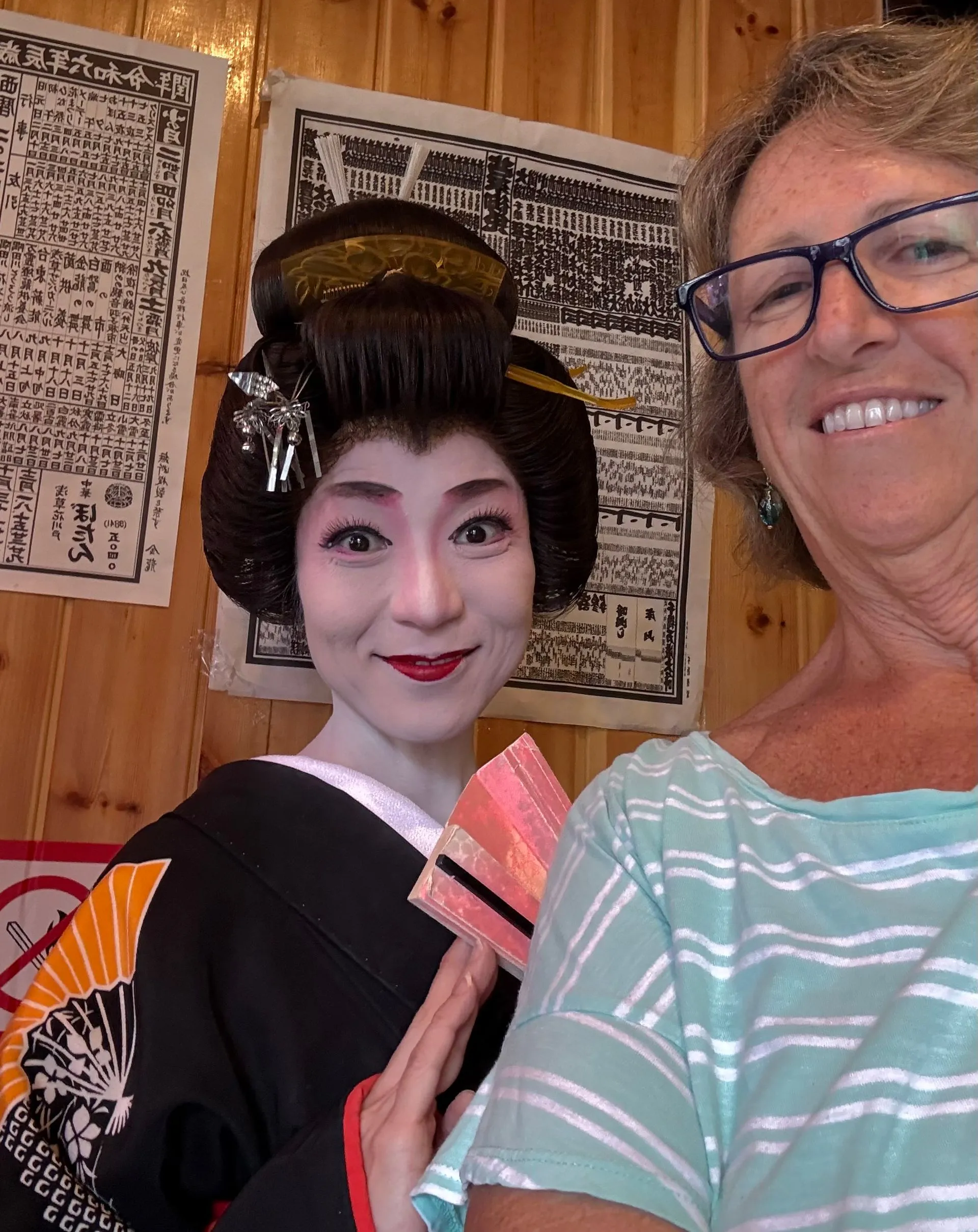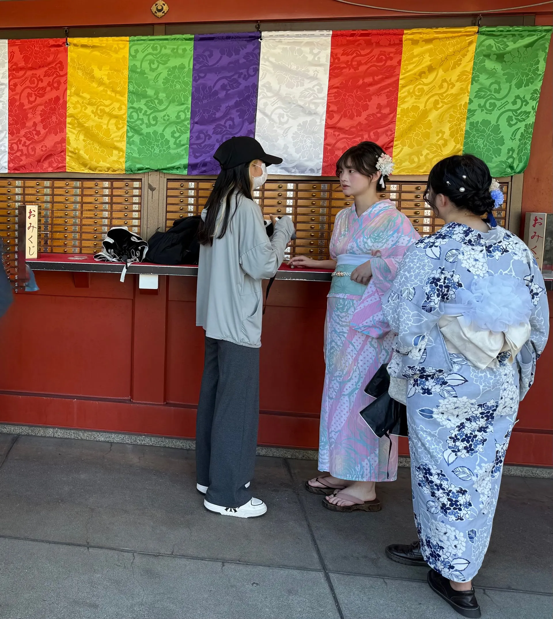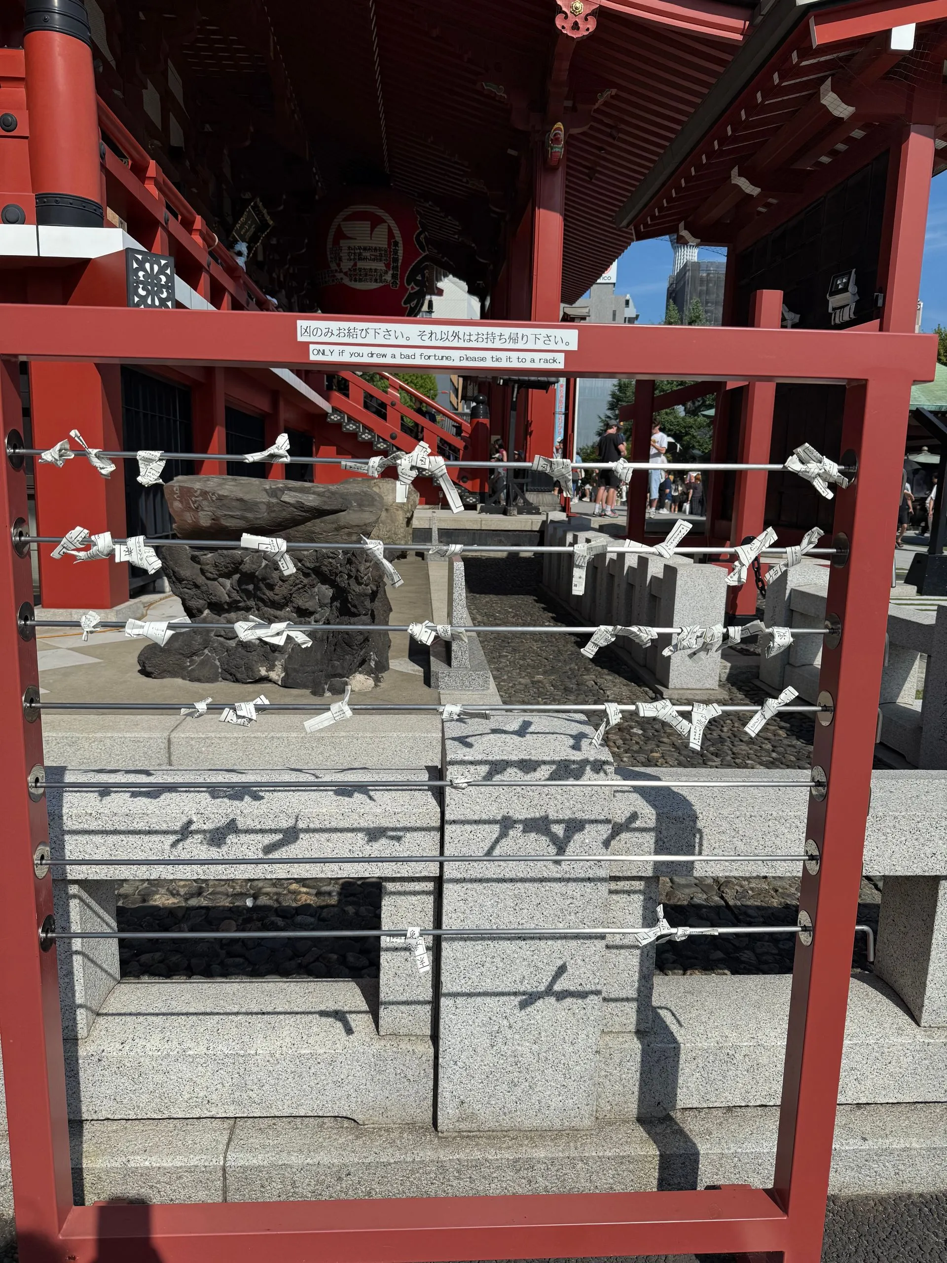 After Sumo we went for a walk in the area near Senso - Ji Temple and ran into Theresa, Riley & Gavin. They taught us how to do our fortunes at the Temple; and Riley was looking to upgrade his from Bad to Good. You tie Bad fortunes to wire racks so they blow away!