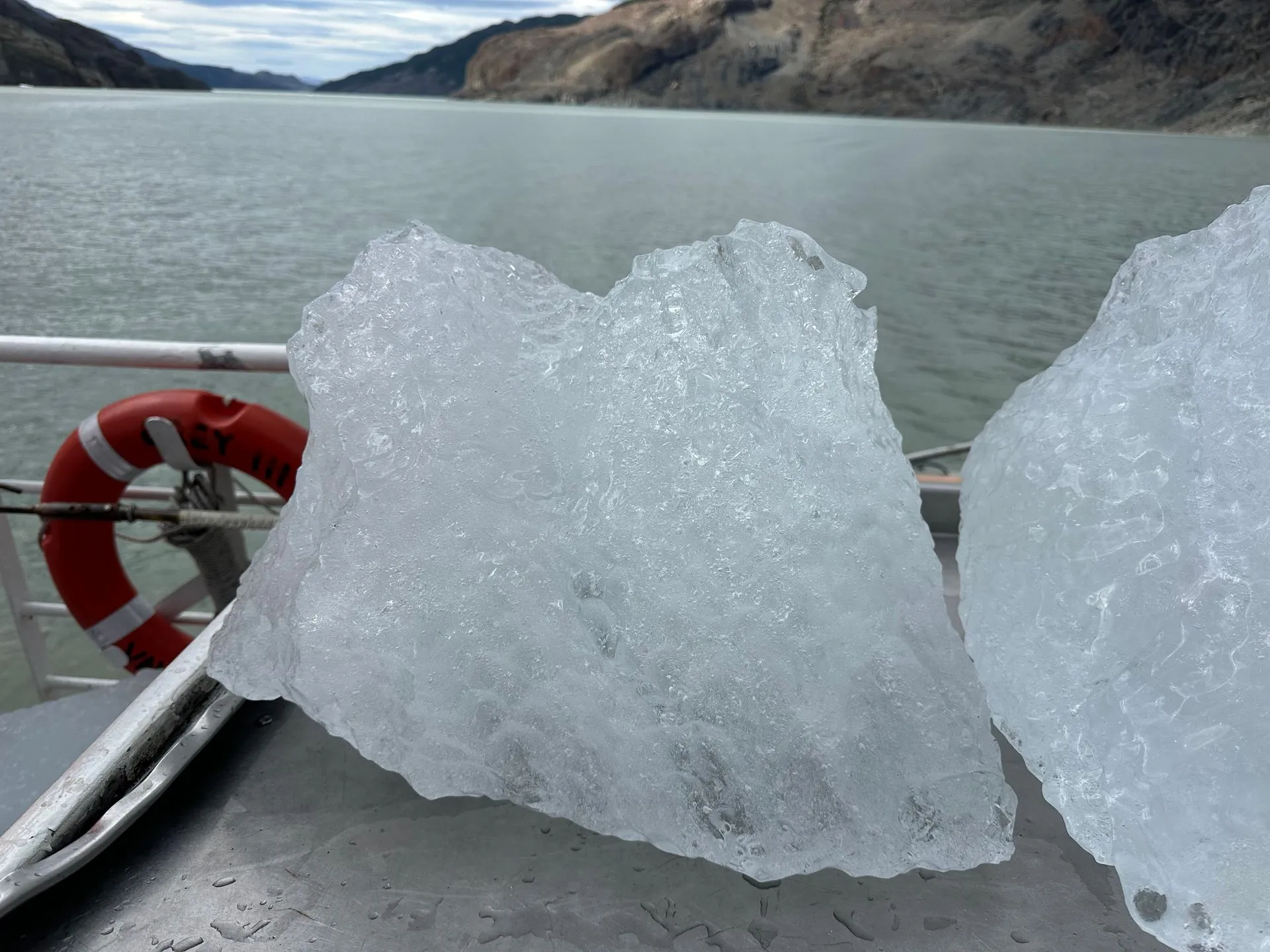 The Catamaran crew fished glacier ice out of the water to use in our cocktails onboard the ship. Yum!