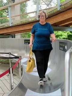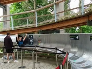 First you do the treetop walk through the forest and this leads to the giant slide. You don't pay to go down the slide, until your are at top and fully committed! All ages join in the fun. We asked one of the attendants, who told us the oldest child he knew to go down was 91 and just last week an 82 year old, celebrated her birthday going down! We were game and he joked that the boxes at the bottom where for those who didn't make it! Fear not!
