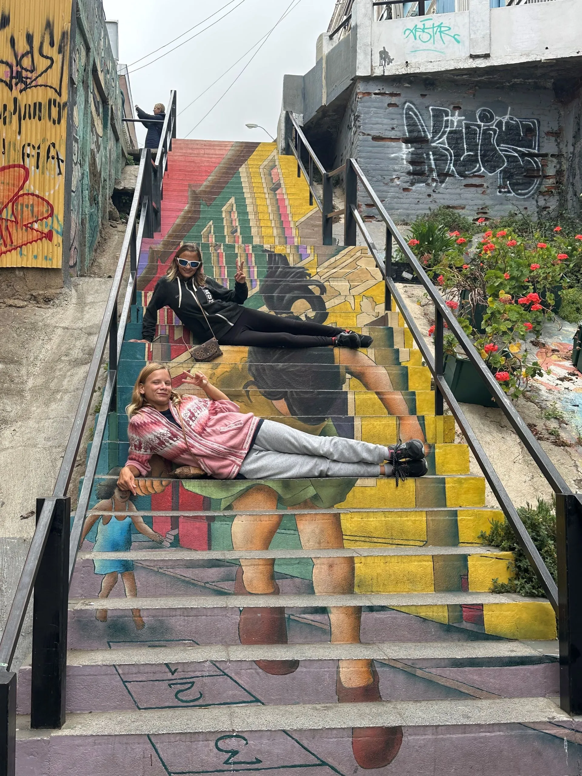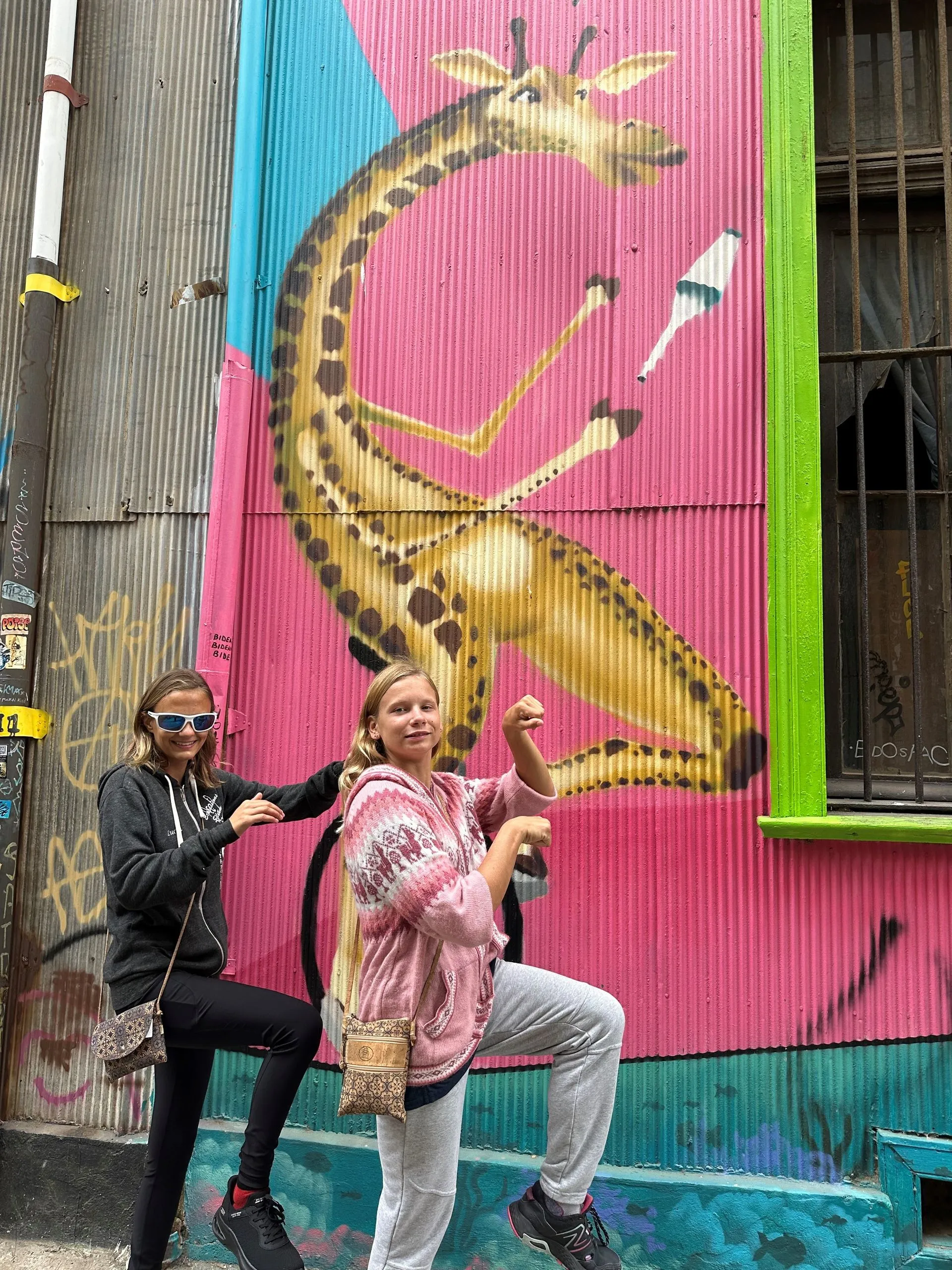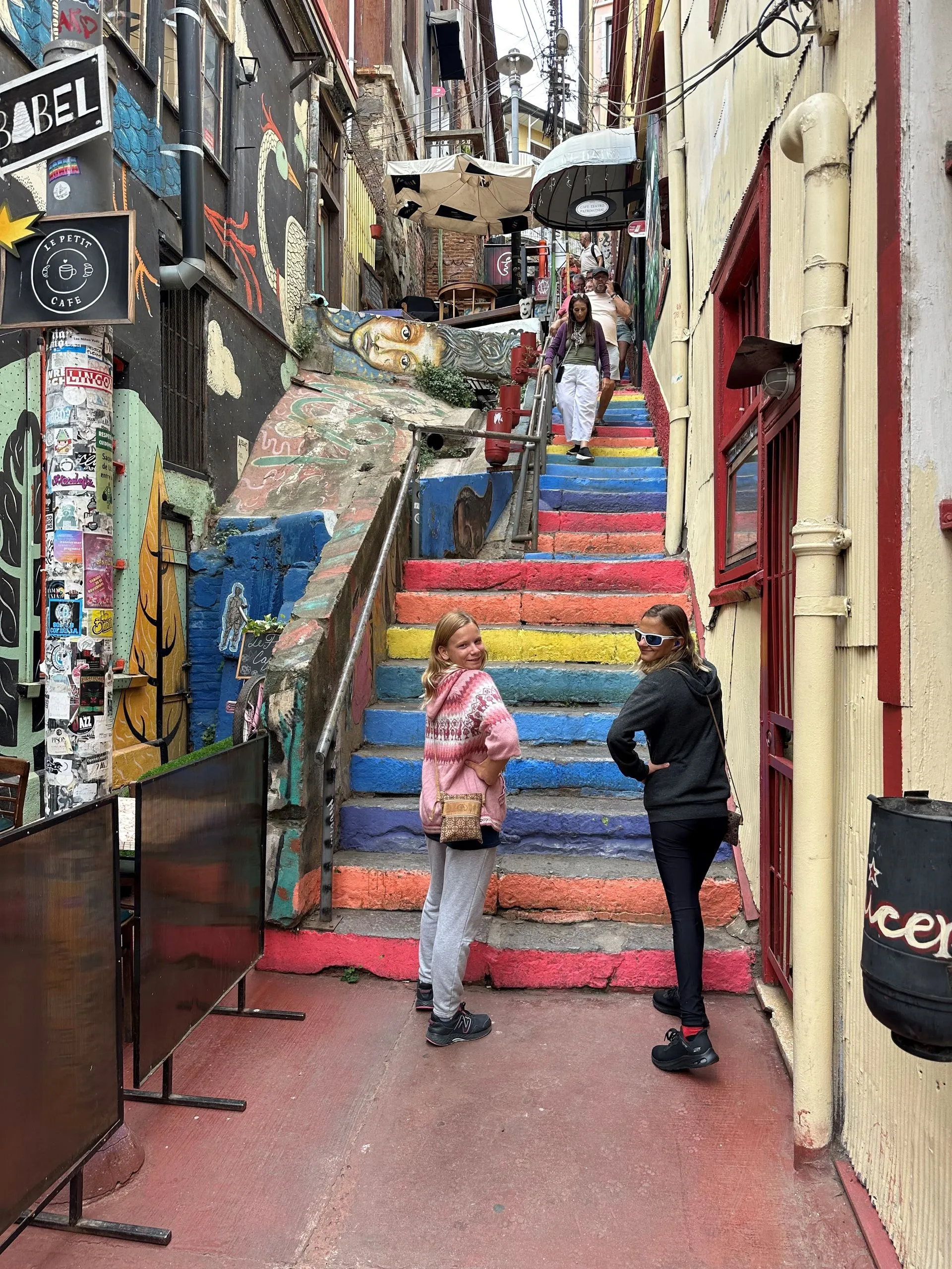 Sunday January 12th we pulled into Valparaiso, Chile for 2 days. This town is known for its vibrant street art, which is everywhere and truly mask some of the depression seen through out the downtown. Nine of us set off on a walking tour of the highlights. The town is built into the side of the hills looking down over the harbor. Teenagers Lucia and Alionia were the perfect models to highlight the artwork for me, it also kept it fresh for them.