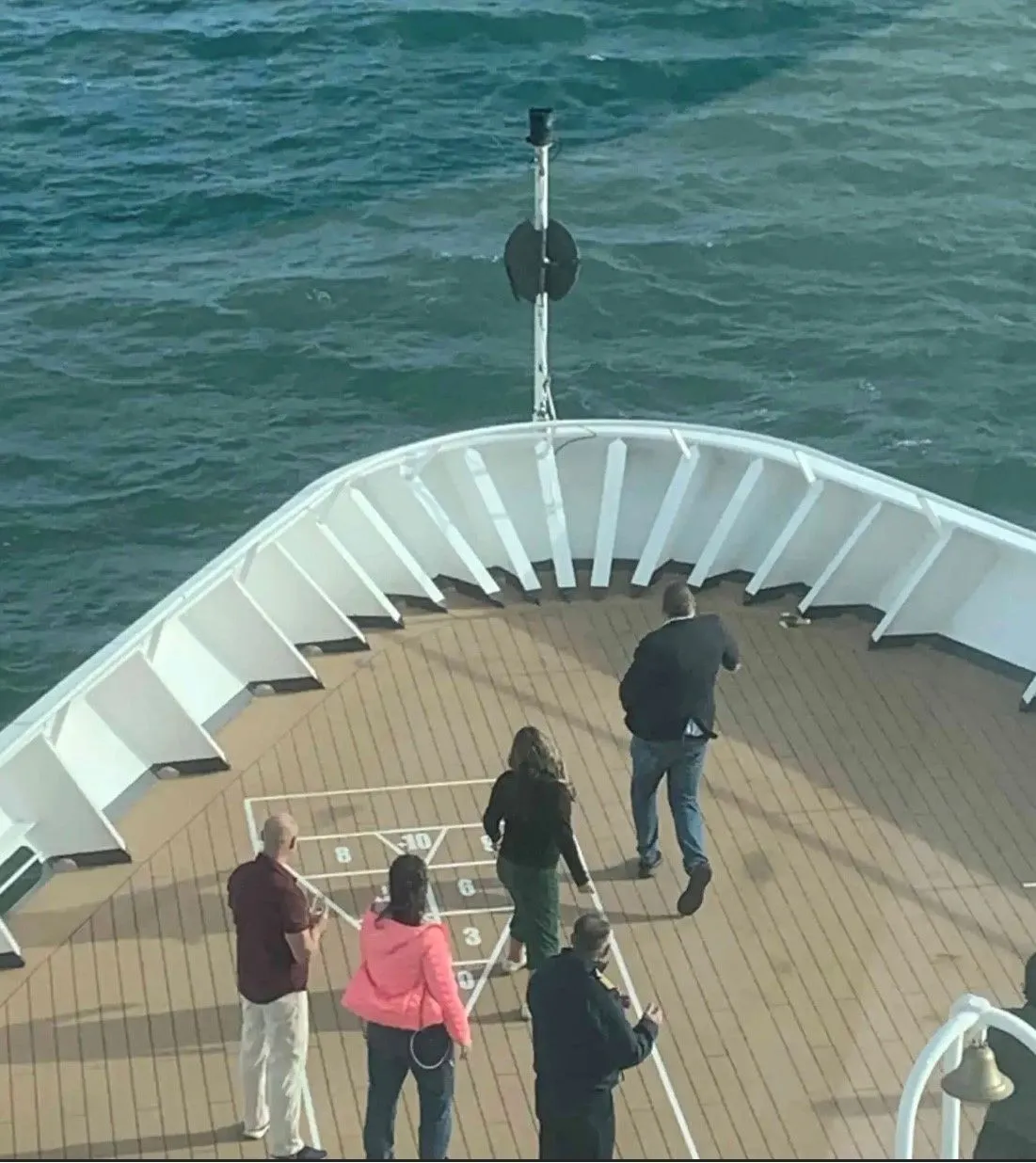 Turns out we didn't go far - sailed maybe 1 or 2 hours and then we dropped anchor in Belfast Lough ( Bay that leads out to the North Channel, between Ireland and Scotland) . We then stayed anchored there, until yesterday afternoon. Miraculously we finally got whatever paperwork we needed, and were OK to finally leave for real! Four Horn blast went off around 4 pm, the engines fired up and we were FINALLY OFF ON OUR TRUE ODYSSEY!! More partying ensued and at first, they told us, we had to get to a close-by Port, for fuel and potable water. So we thought we were going to Scotland. The Captain then calculated we could make it to France with the fuel we had, and so they steered the Ship south out of the Lough and off to France we headed. Residents agreed to drink more alcohol than water and shower together to conserve! Such a cheeky cooperative bunch! Gotta love the laughs!