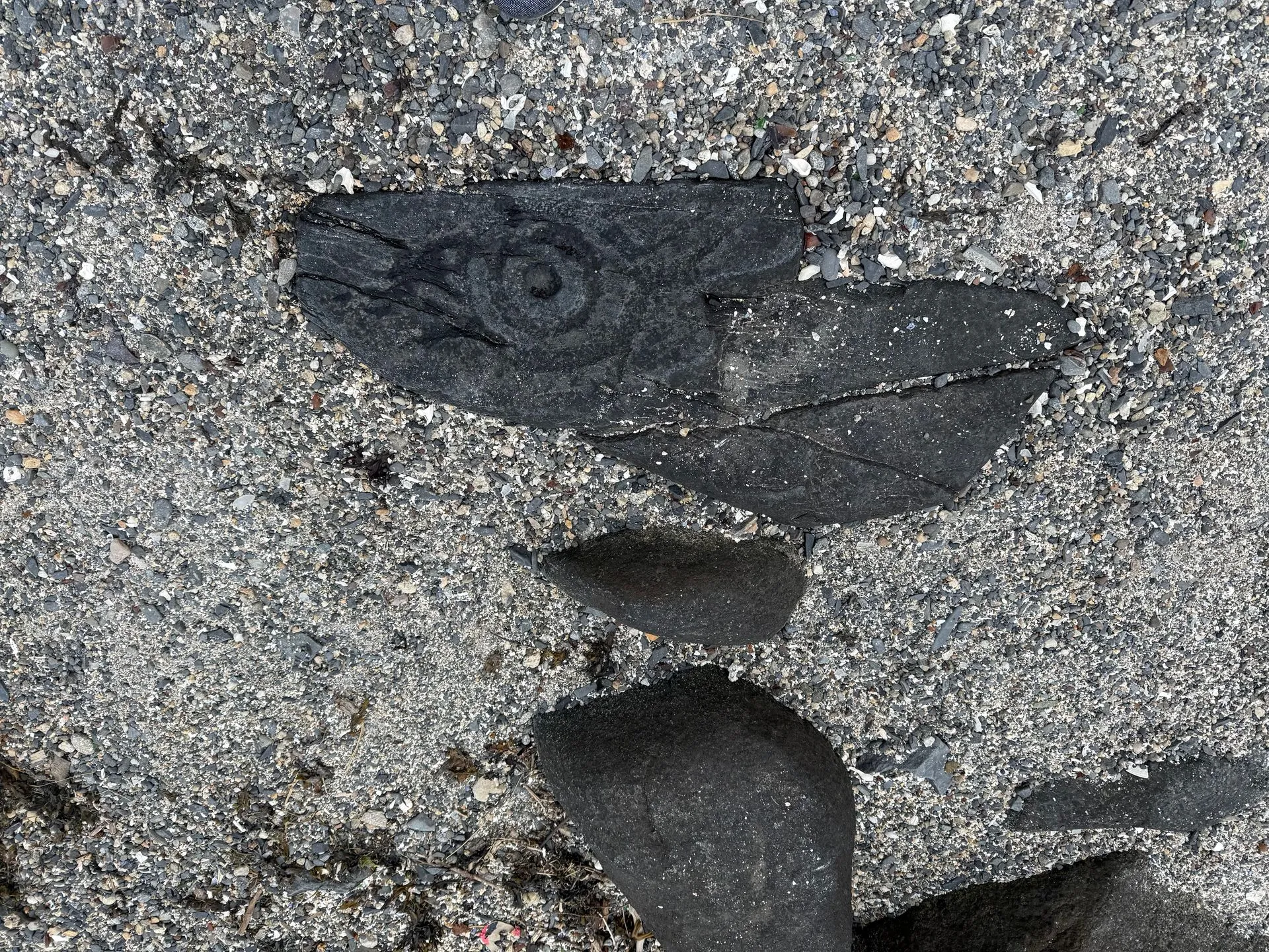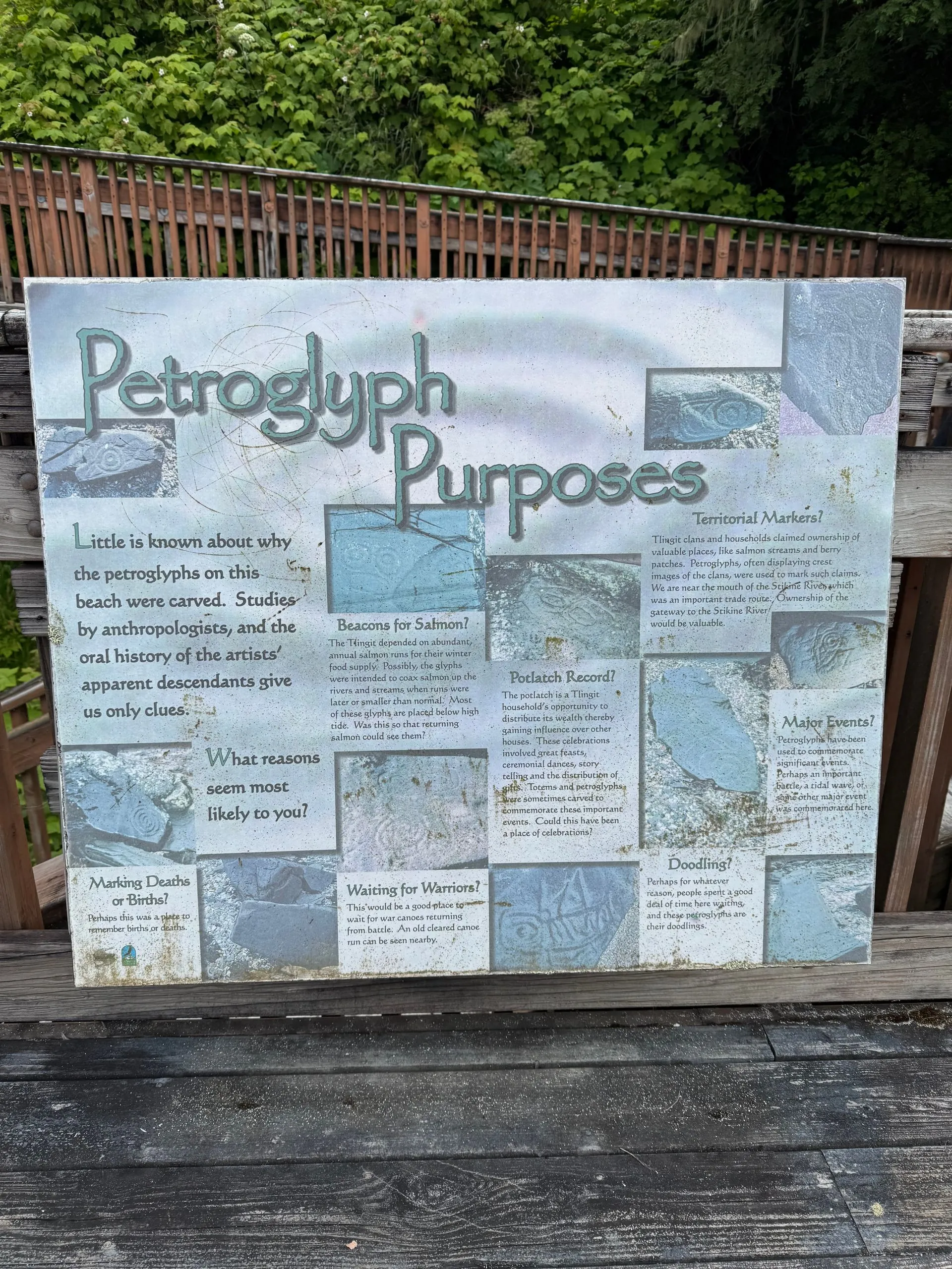 We decided to explore the sleepy town of Wrangell, Alaska by E Bikes. I have ridden e-bikes before and these were the smoothest ride I have had to date, perhaps due to the nice wide tires. Wrangell's population is barely 2,000. The rental shop gave us a map and some suggestions for rides. First stop was Petroglyph Beach.
