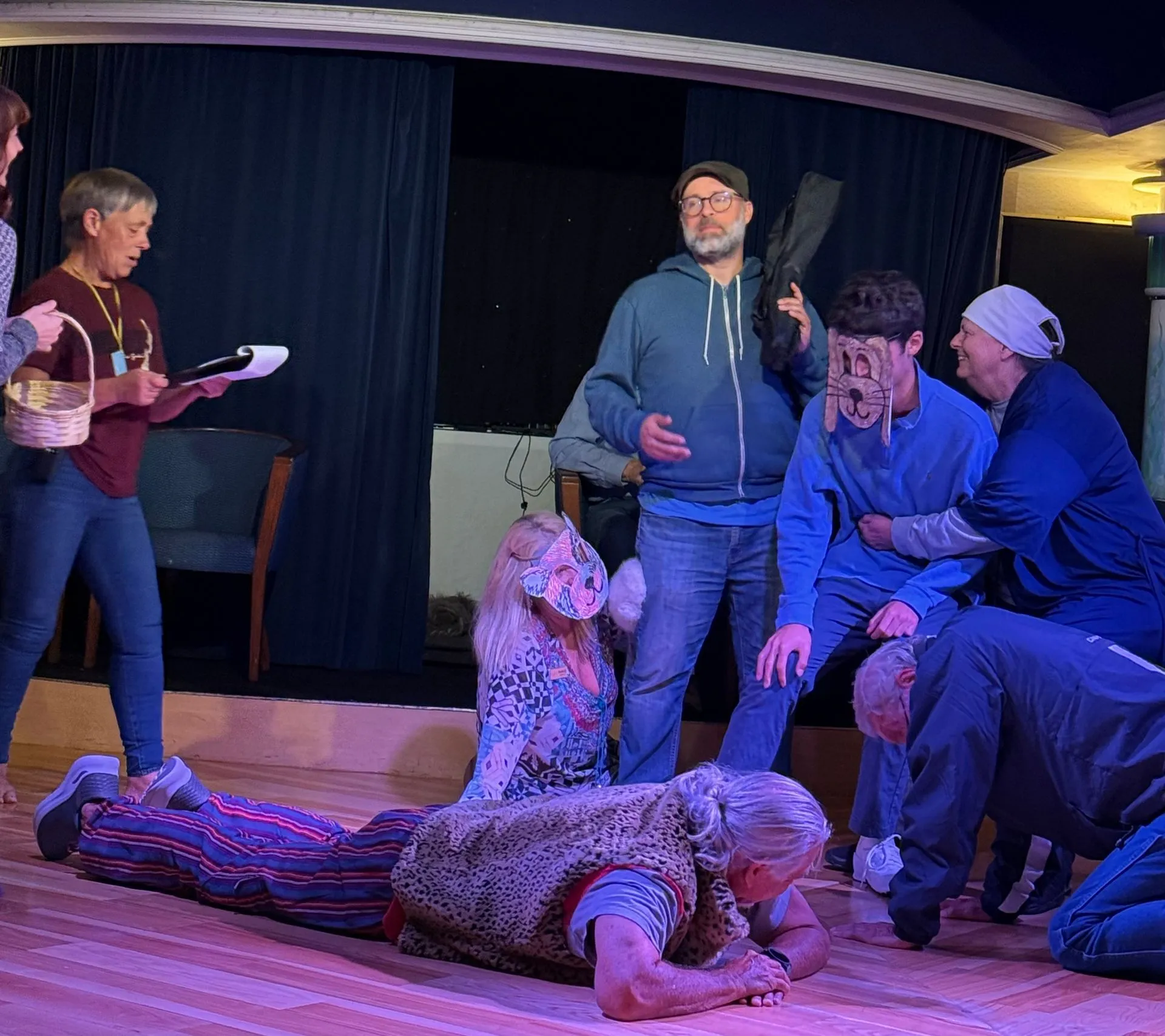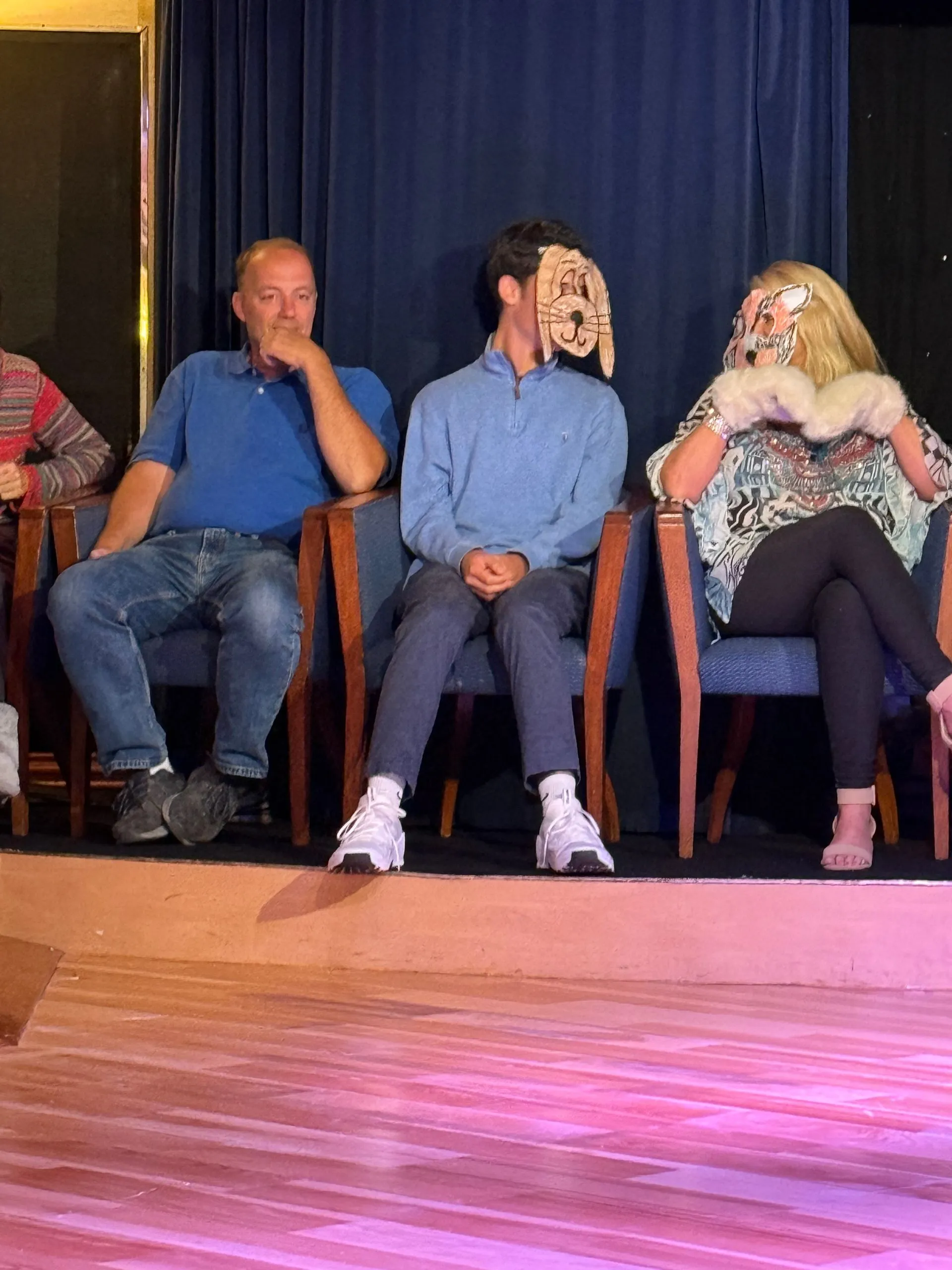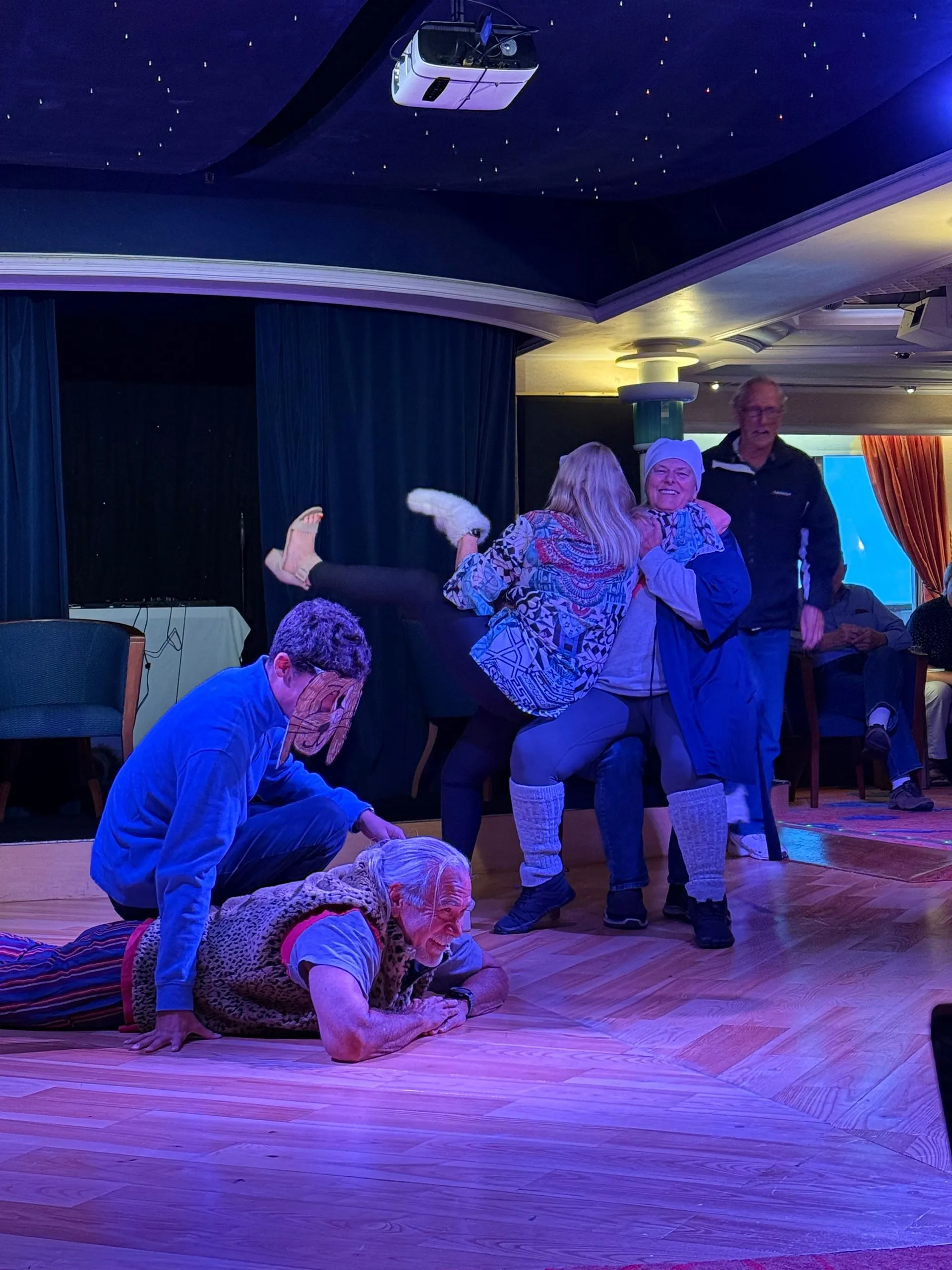 After dinner things got a little more lively as Brett and Rich along with Bosco all got picked for acting roles in resident Viv's, New Zealand version of a somewhat twisted Little Red Riding Hood tale. Brett played a dog, Rich was bad guy #2, Randy Andy and Bosco was the hero, lumberjack Jay Gay. Sheri and I just enjoyed sitting back and watching the action unfold!